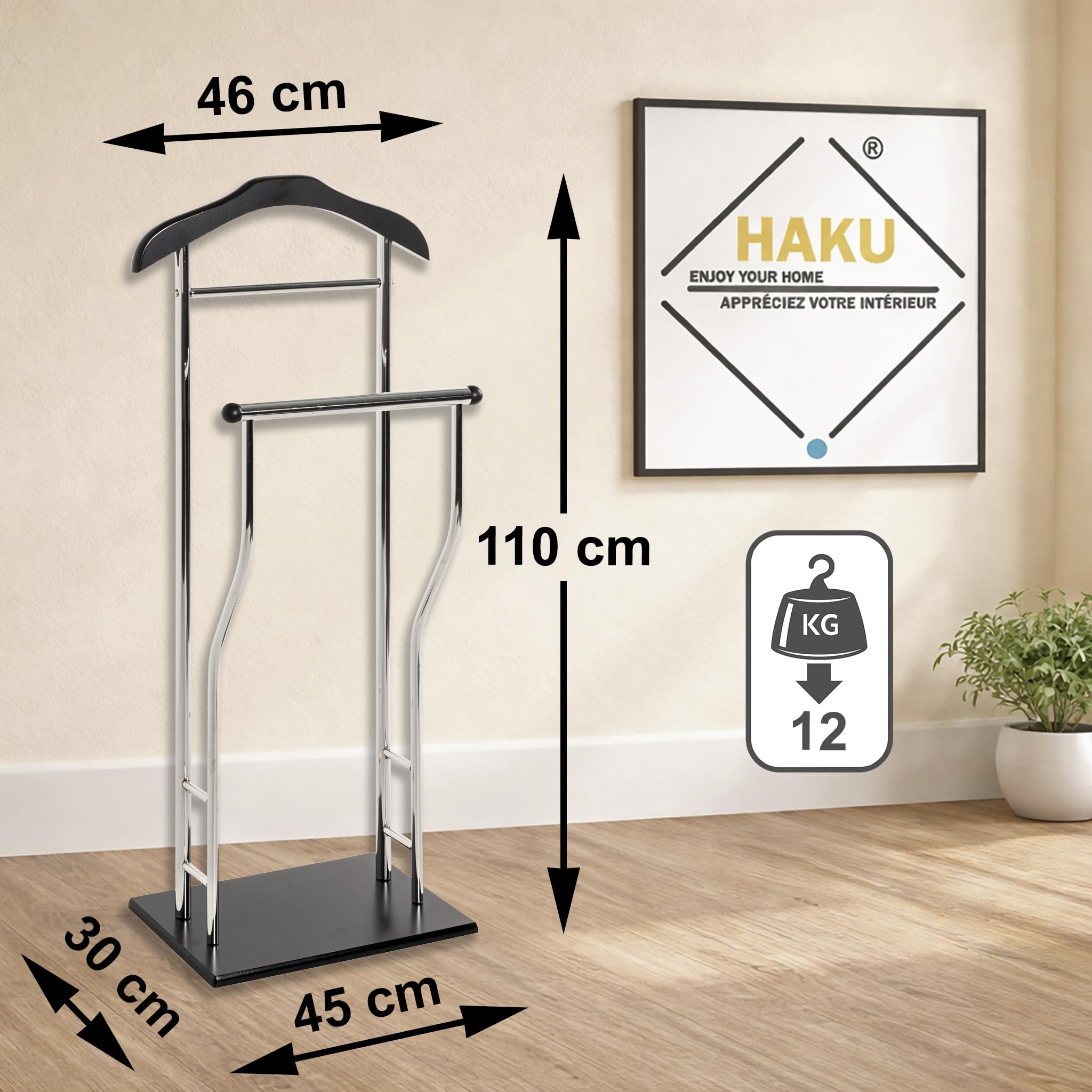 HAKU Herrendiener chrom Schlafzimmer schwarz stiller Diener MDF, Metall - Masse: B 45 x H 110 x T 30 cm, Style: Modern