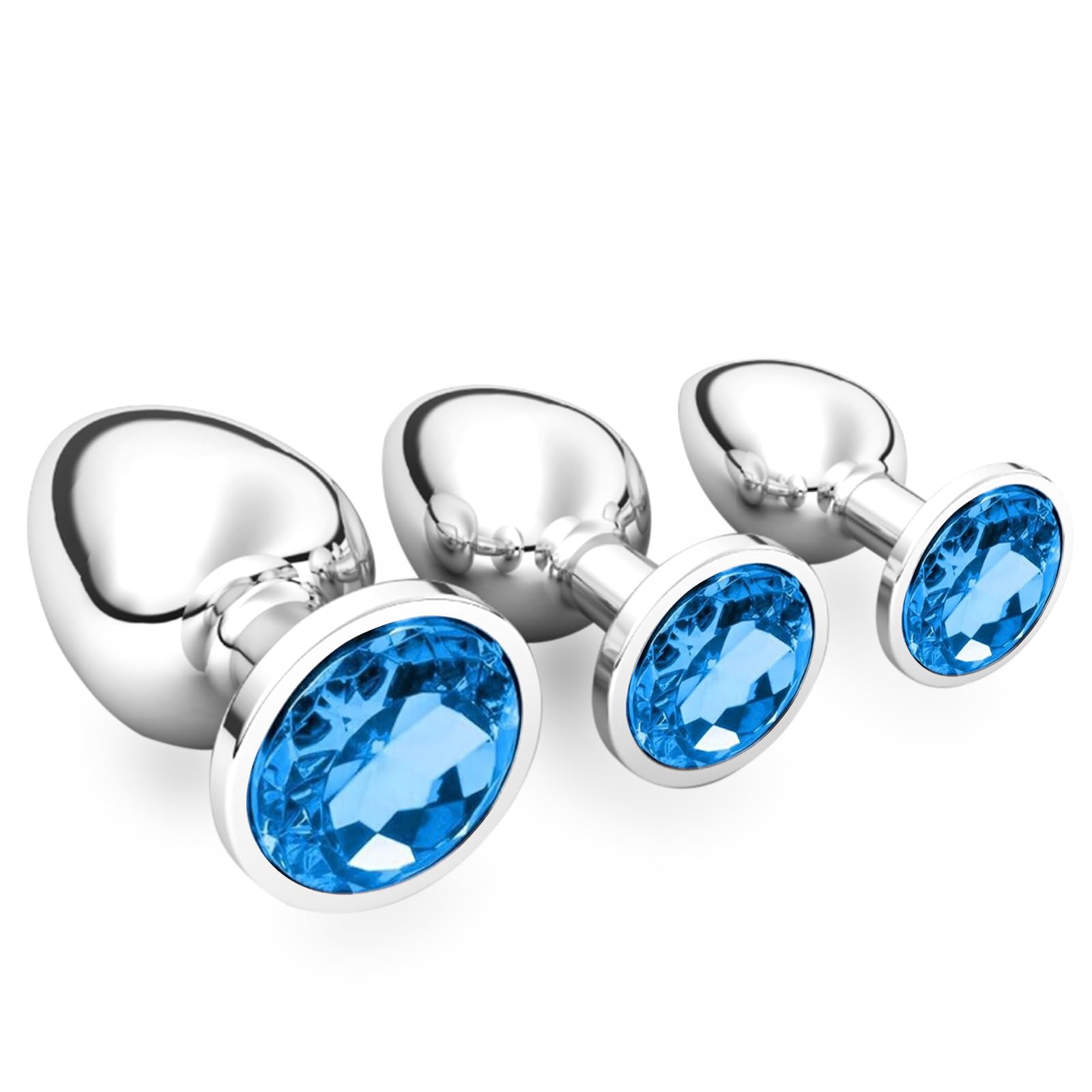 halercay 3 Stücke Klein Medium Gross Metall Analplug Set mit Kristall Diamant Sex Spielzeug,Buttplug Anal Butt Plug,für Frauen Männer Paare Anfanger für Frauen Männer Plug Metall Set (Blau)