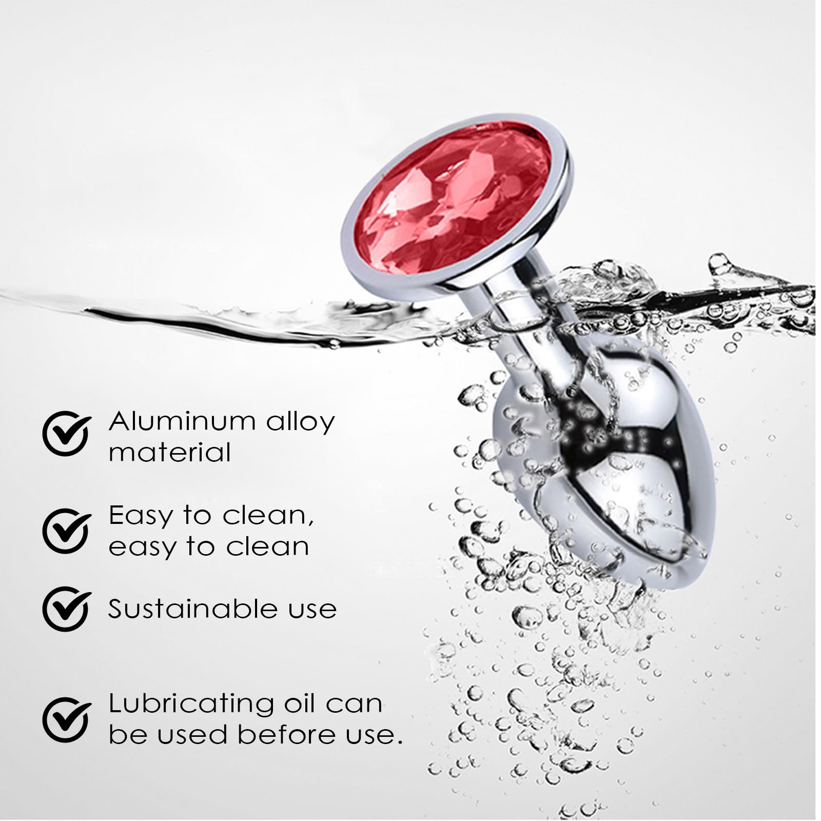 halercay 3 Stücke Klein Medium Gross Metall Analplug Set mit Kristall Diamant Sex Spielzeug,Buttplug Anal Butt Plug,für Frauen Männer Paare Anfanger für Frauen Männer Plug Metall Set (Rote)