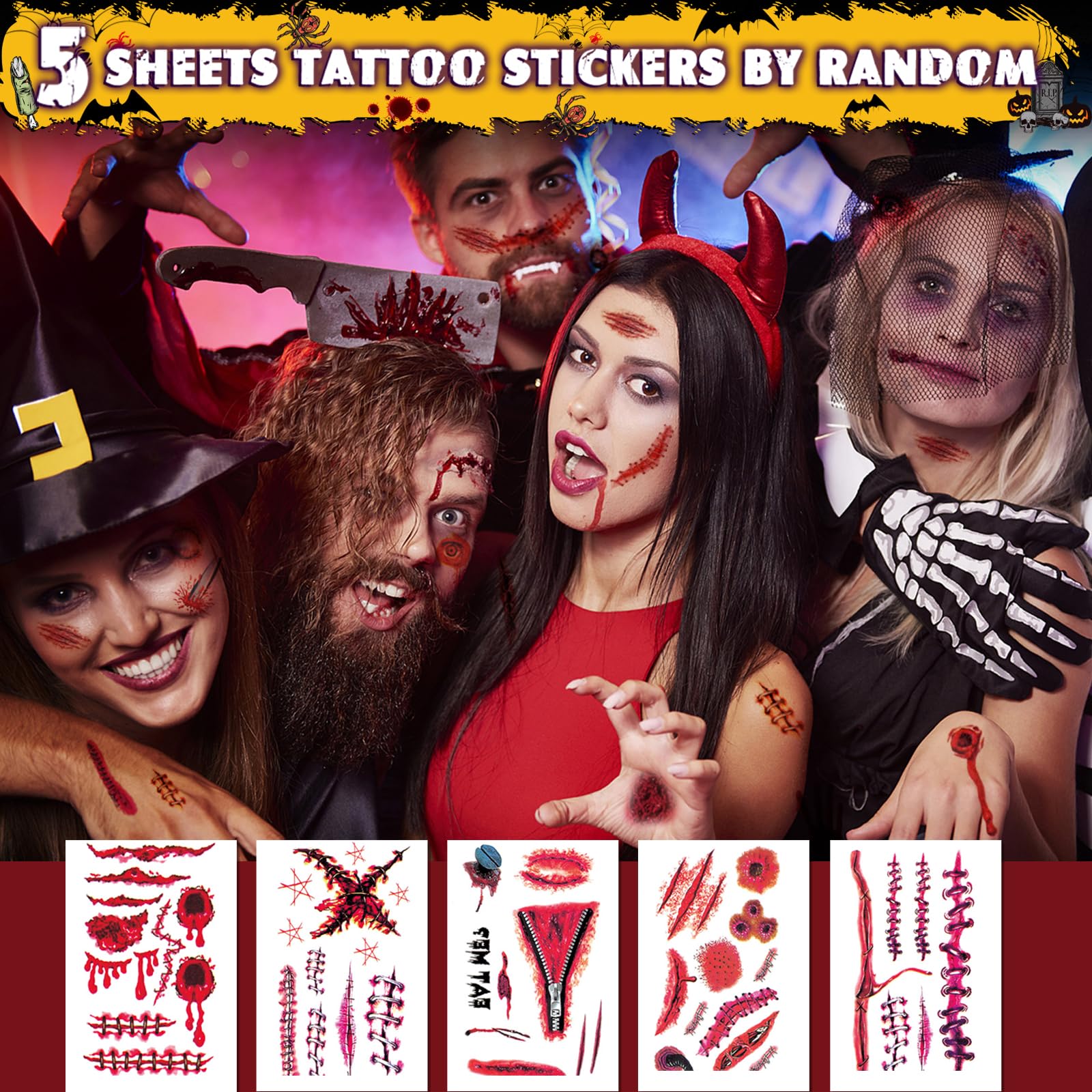 Halloween Narbe wunden Tattoo Fensteraufkleber, Halloween Blutige Aufkleber Für Halloween Türdekoration, Halloween Fensteraufkleber Halloween Horror Dekoration Requisiten Für Halloween Party Dekoration