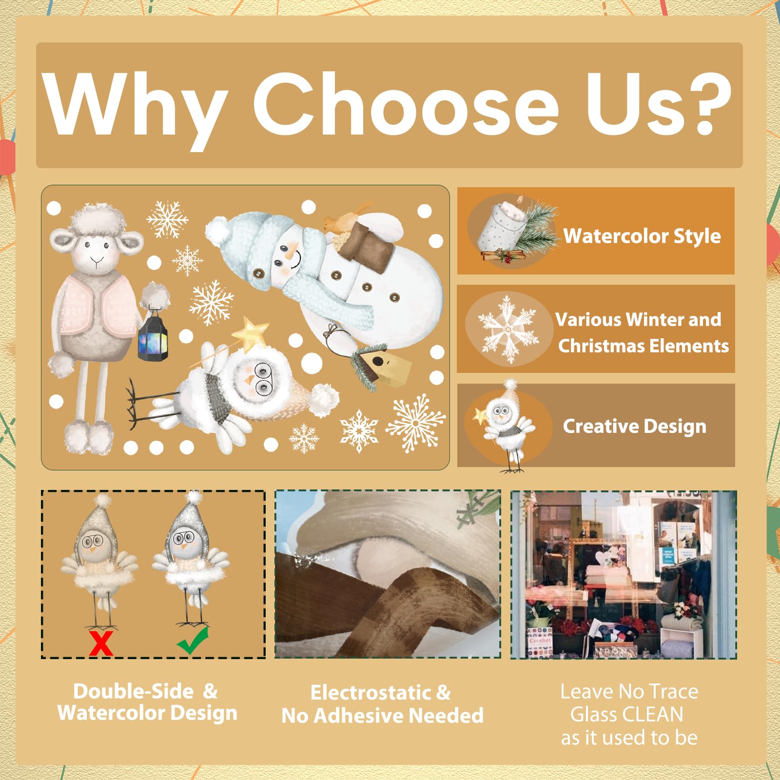 4. Wiederverwendbar: Im nächsten Jahr sind diese Wintersticker noch erhältlich. Dies sind wiederverwendbare Aufkleber, damit Sie sie aufbewahren können!