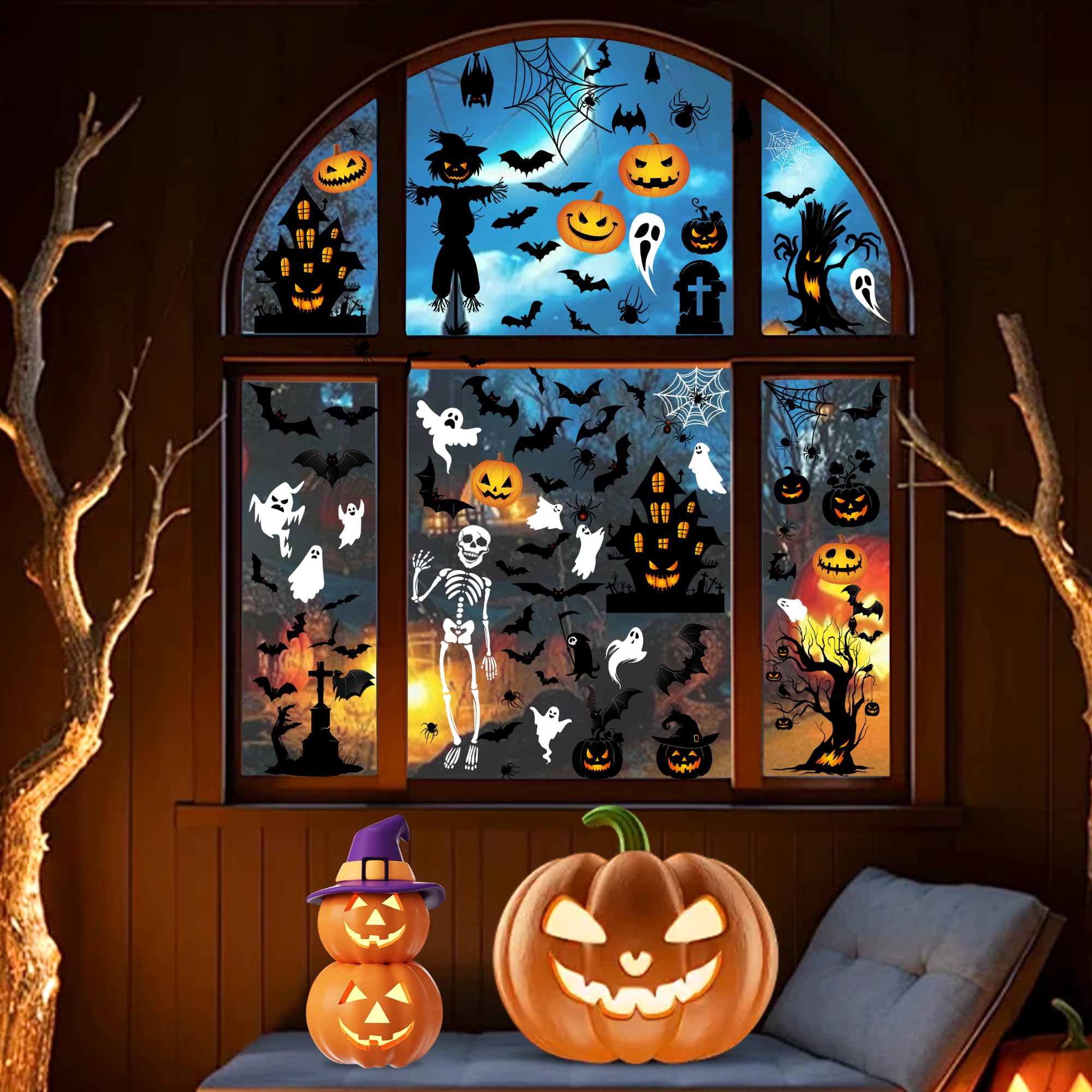 6. Doppelseitiges Design: Diese Fensteraufkleber Halloween haben doppelseitige Designs, diese lebendigen Designs können sowohl innen als auch aussen betrachtet werden.