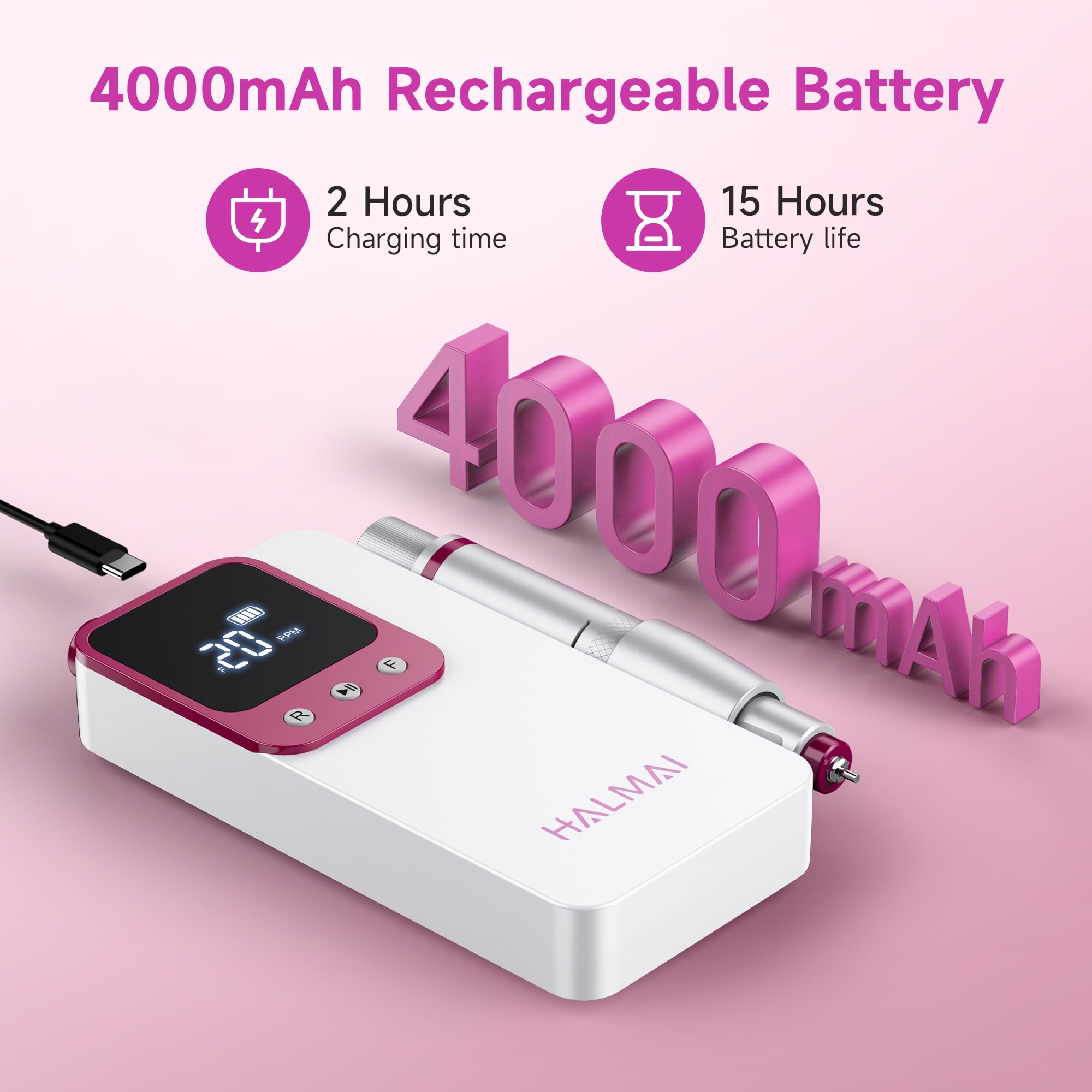 HALMAI elektrischer Nagelfraeser kabellos mit 40000 U Min