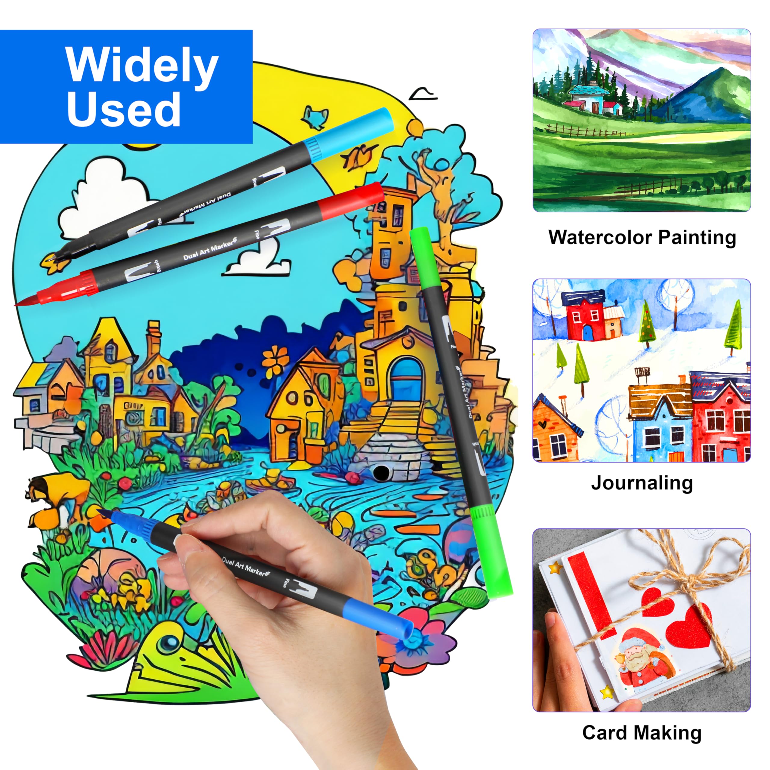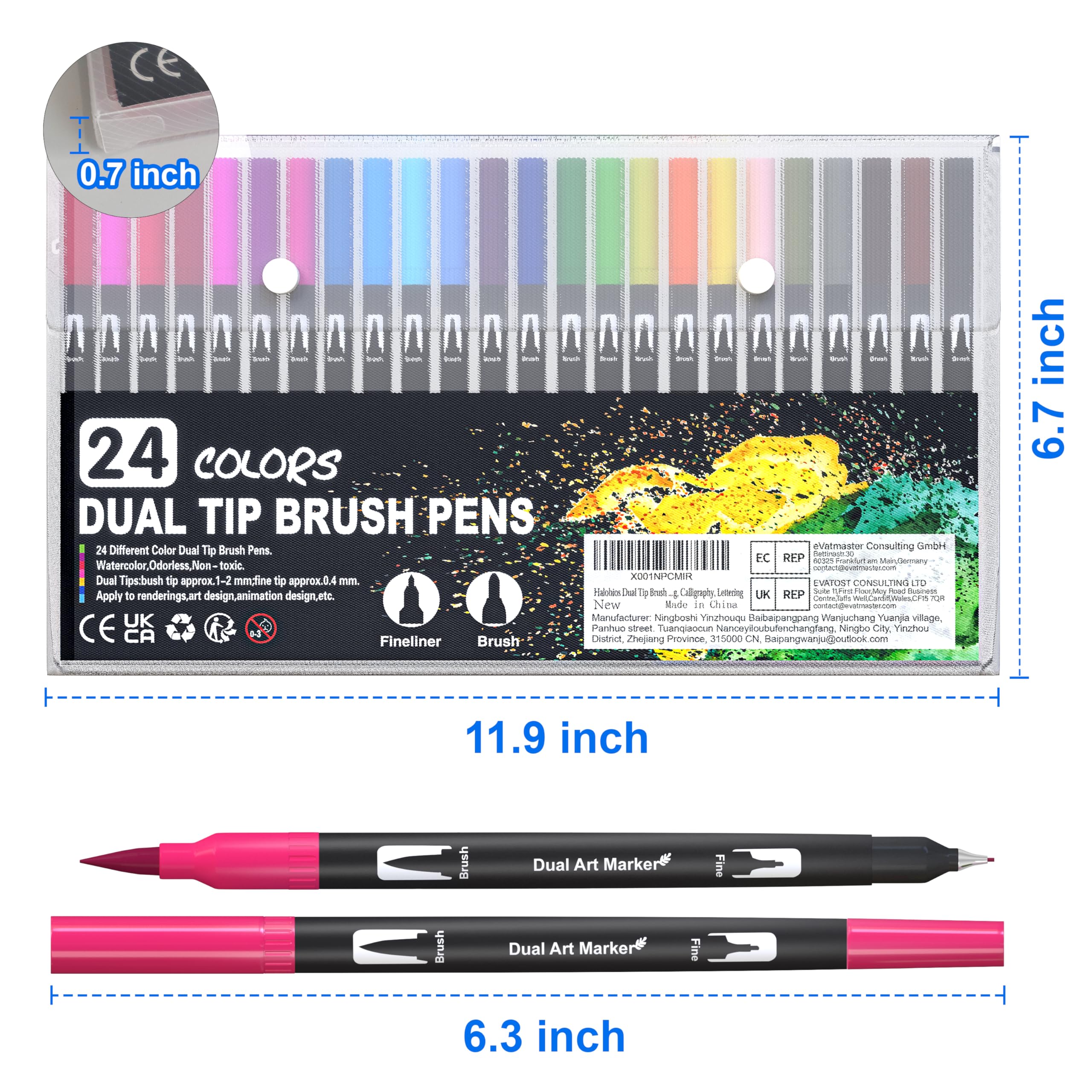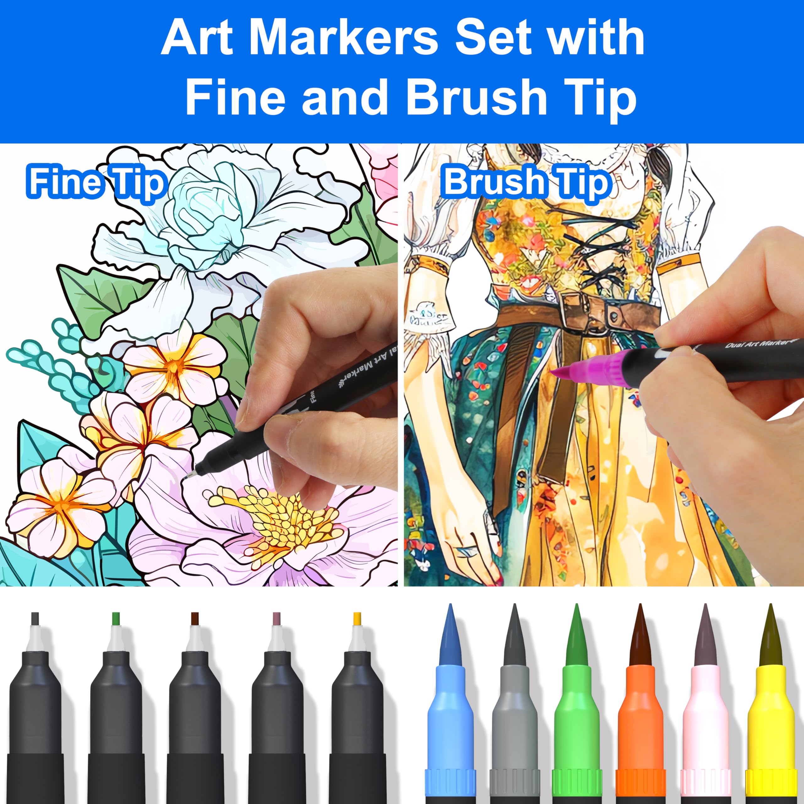 Unser Unternehmen setzt sich ein: Vom Leben zum künstlerischen Schaffen, wir achten nicht nur auf den Produktionsprozess und die Produktqualität der Dual Brush Pen, sondern auch auf die Zufriedenheit jedes Kunden mit dem Doppel-Filzstifte Set. Jeder Kunde kann unser Wachstum und unseren Fortschritt miterleben. Um ein gutes Markenimage aufzubauen und den Markt zu erweitern. Wir haben uns für die Spitze eines hochwertigen Maker Pens entschieden, der nicht leicht zu verschleissen und langlebig ist, und der Tintenstand des Pinselspitze ist glatt, schnell trocknend, hell und glänzend in der Farbe, gleichmässig und voll. Das fortschrittliche duale Design macht den Handwriting Stifte vielseitiger und kann verschiedene Malbedürfnisse erfüllen. Der Farbintensiver Premium-Filzstift ist ein hervorragendes Geschenk für Familien, Künstler, Kinder, Freunde, Erwachsene, Lehrer, Anfänger, Studenten und alle, die Kunst und Malerei lieben. Soft Brush, die dicke Stiftspitze kann zum Malen einer breiten Palette von Farben verwendet werden. Fineliner Stift, mit der feinen Stiftspitze lassen sich Konturen und Linien nachzeichnen. Der Bürstenkopf besteht aus Nylonfaser, die flexibel und langlebig ist leicht zu tragen ist. Jedes Doppel-Filzstifte Set wird mit farbigen Stiftkappen in der gleichen Farbe geliefert. So finden Sie die gewünschte Farbe auf einen Blick. Doppelköpfigen filzstifte Set ist mit einem schönen Kunststoffetui ausgestattet, das das Reisen und die Aufbewahrung erleichtert. Anmerkung: 1.bitte stellen Sie sicher, dass die Kappen der Aquarellstifte nach dem Gebrauch fest aufgesetzt bleiben, damit die Filzstifte nicht austrocknen. 2. wenn die Tinte der Marker auf einer Doppelspitze nicht ausreicht, verwenden Sie das Filzstifter bitte eine halbe Stunde lang auf dem Kopf stehend. 3. Kinder unter 3 Jahren sollten die Handlettering stifte nur unter Aufsicht von Erwachsenen benutzen. Verhindern Sie, dass Ihr Kind versehentlich den Pinselstifthut verschluckt.