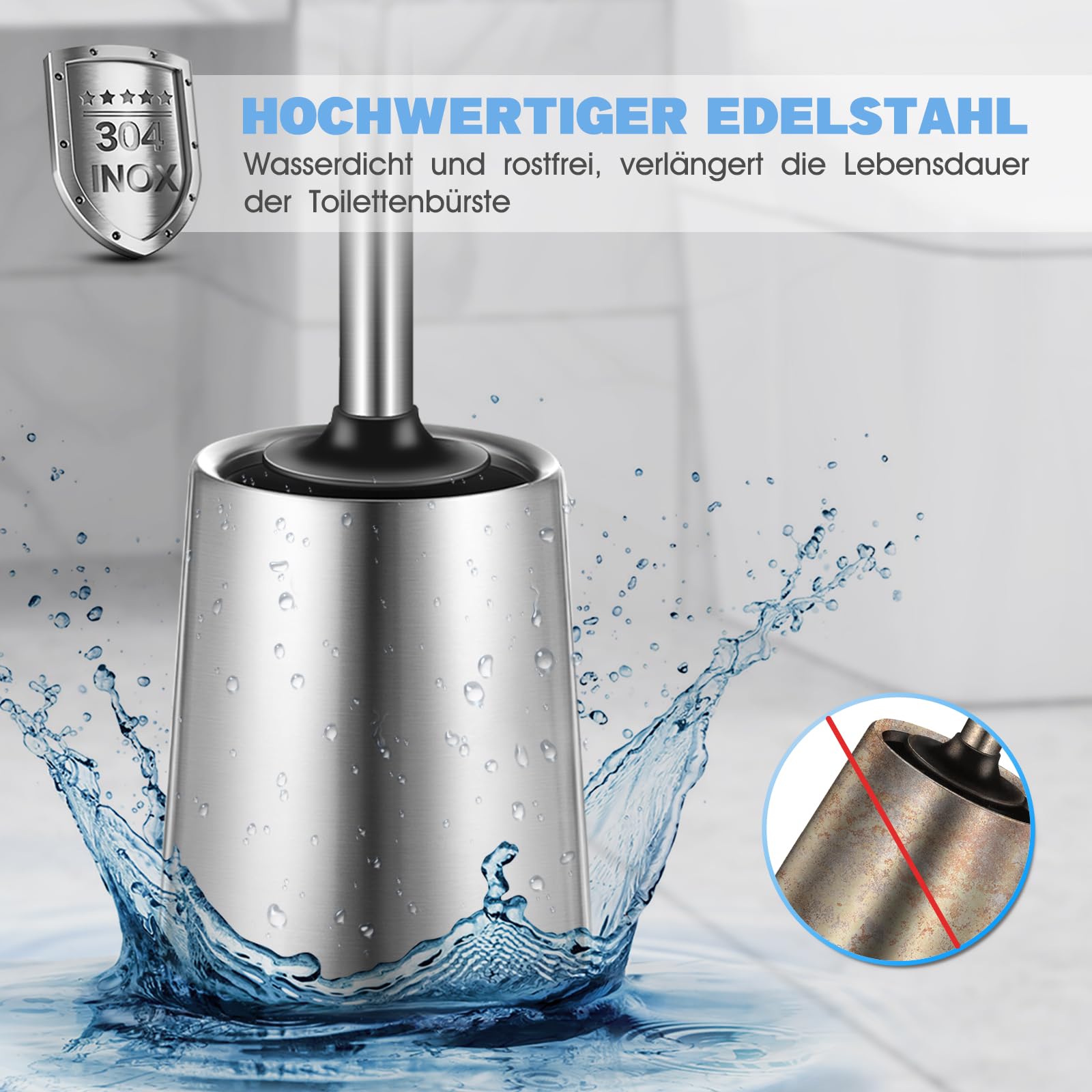 HAMITOR Klobürste Silikon WC Bürsten Edelstahl: Tiefenreinigüng Toilettenbürste mit Halter und Randreiniger-Flexible Klobürstenhalter Set fur Badezimmer Stehen Klobürste