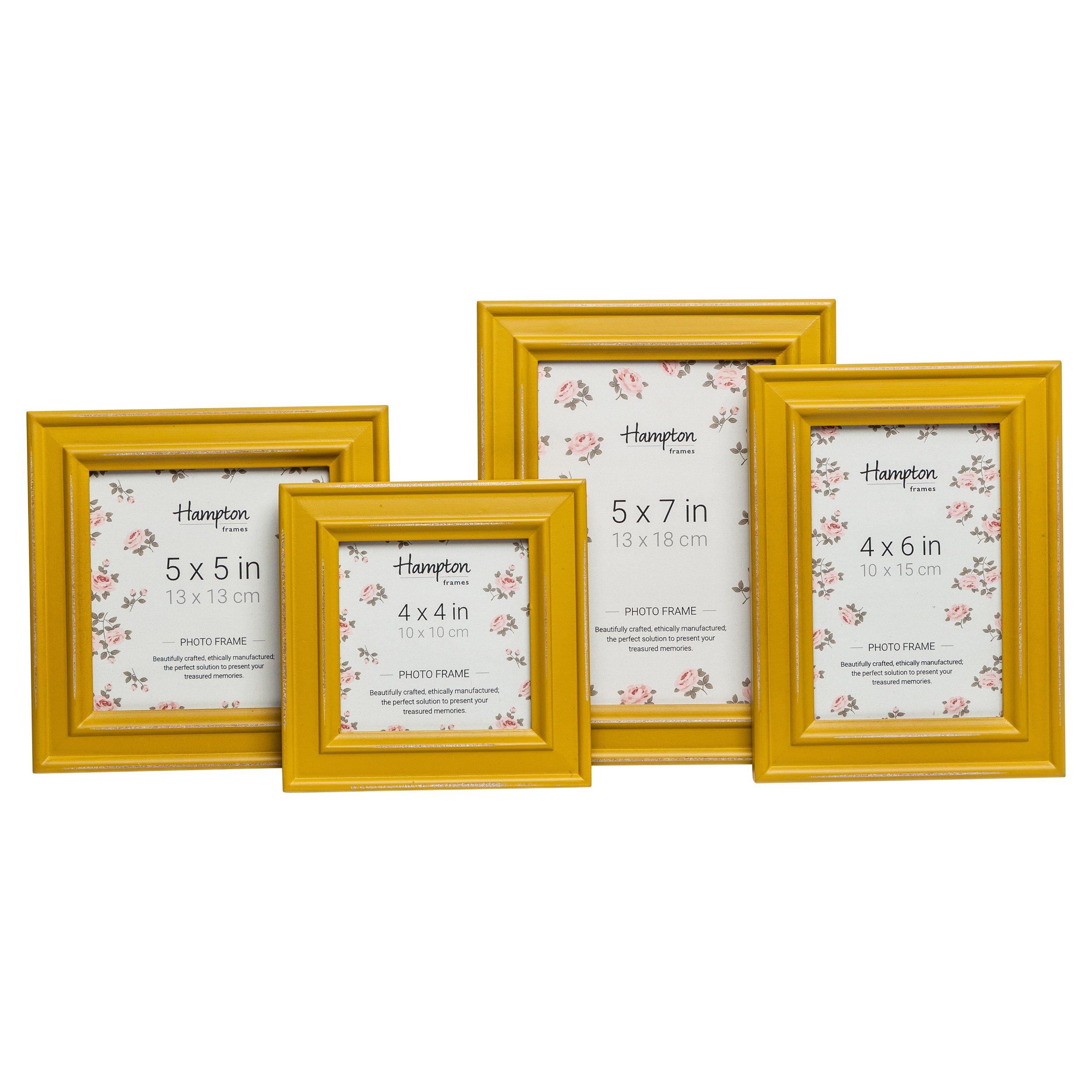 Hampton Frames | Bilderrahmen Paloma quadratisch | 10x10cm, gelb, Holz | Glasöffnung, 30mm Profil, freistehend & Wandmontage | Modernes Design für Fotos und Dekoration