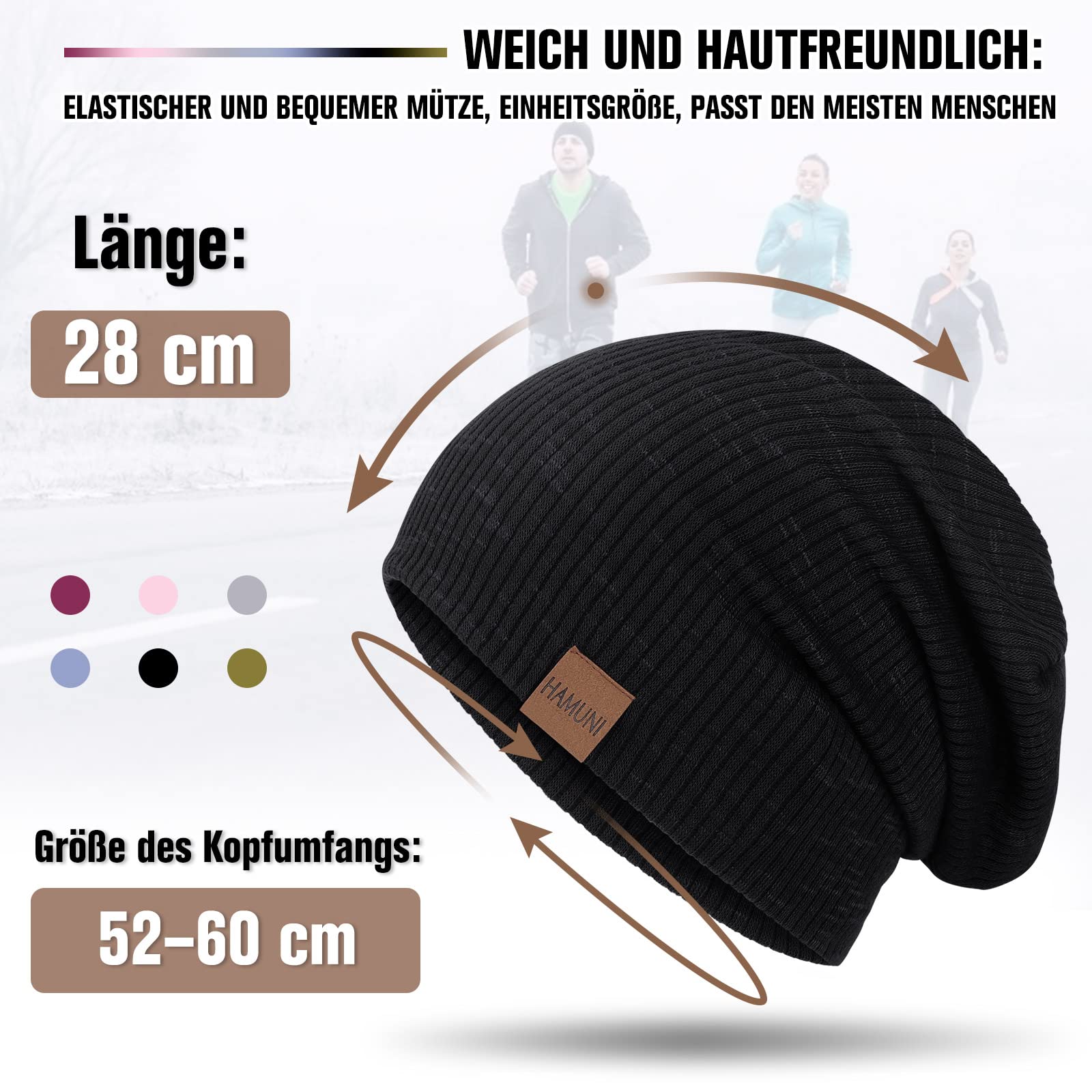 HAMUNI Mütze Damen Slouch Beanie Mütze Herren Elastisch Weich Bequem Jersey Mützen Klassische Mode Longbeanie perfekt für Frühling Herbst und Winter
