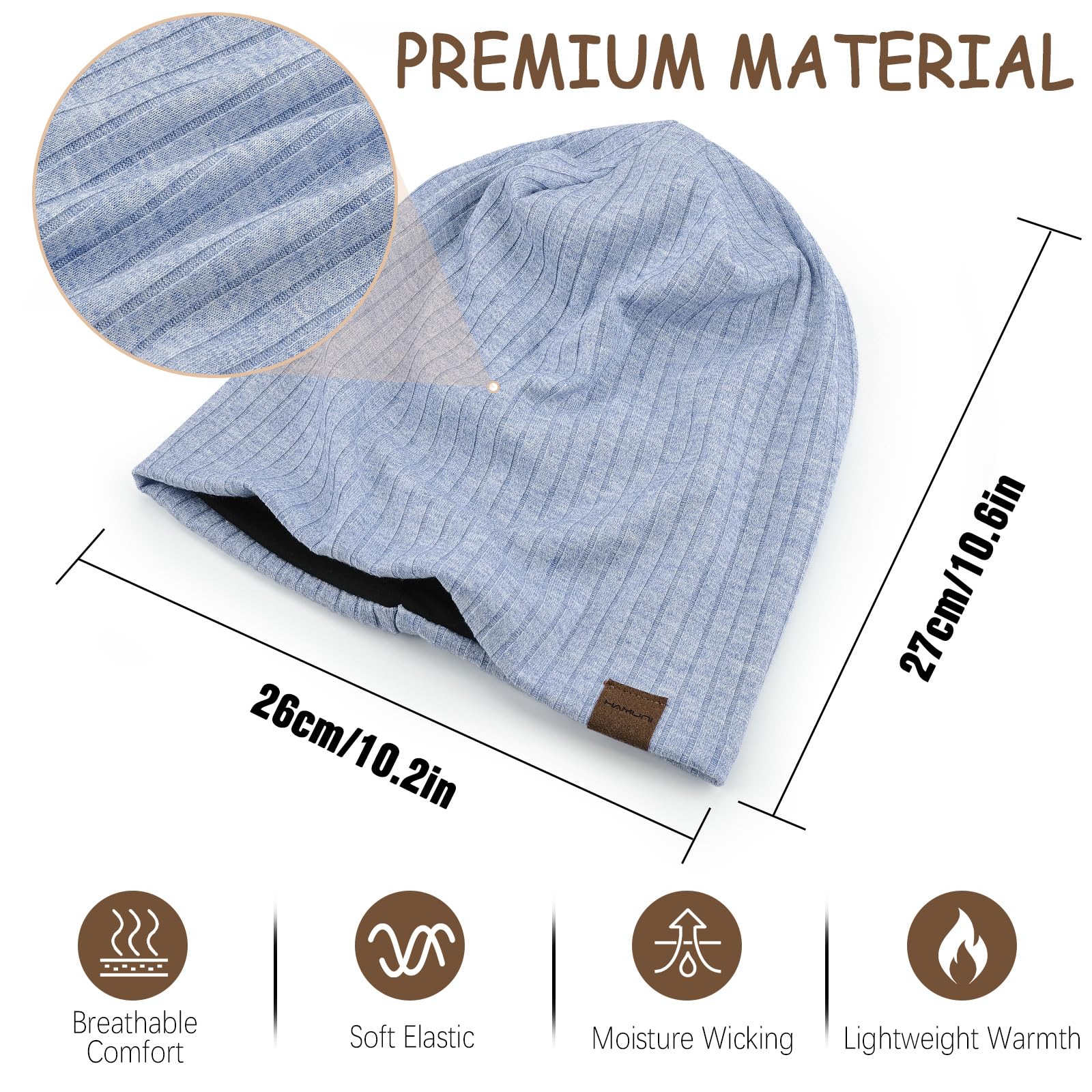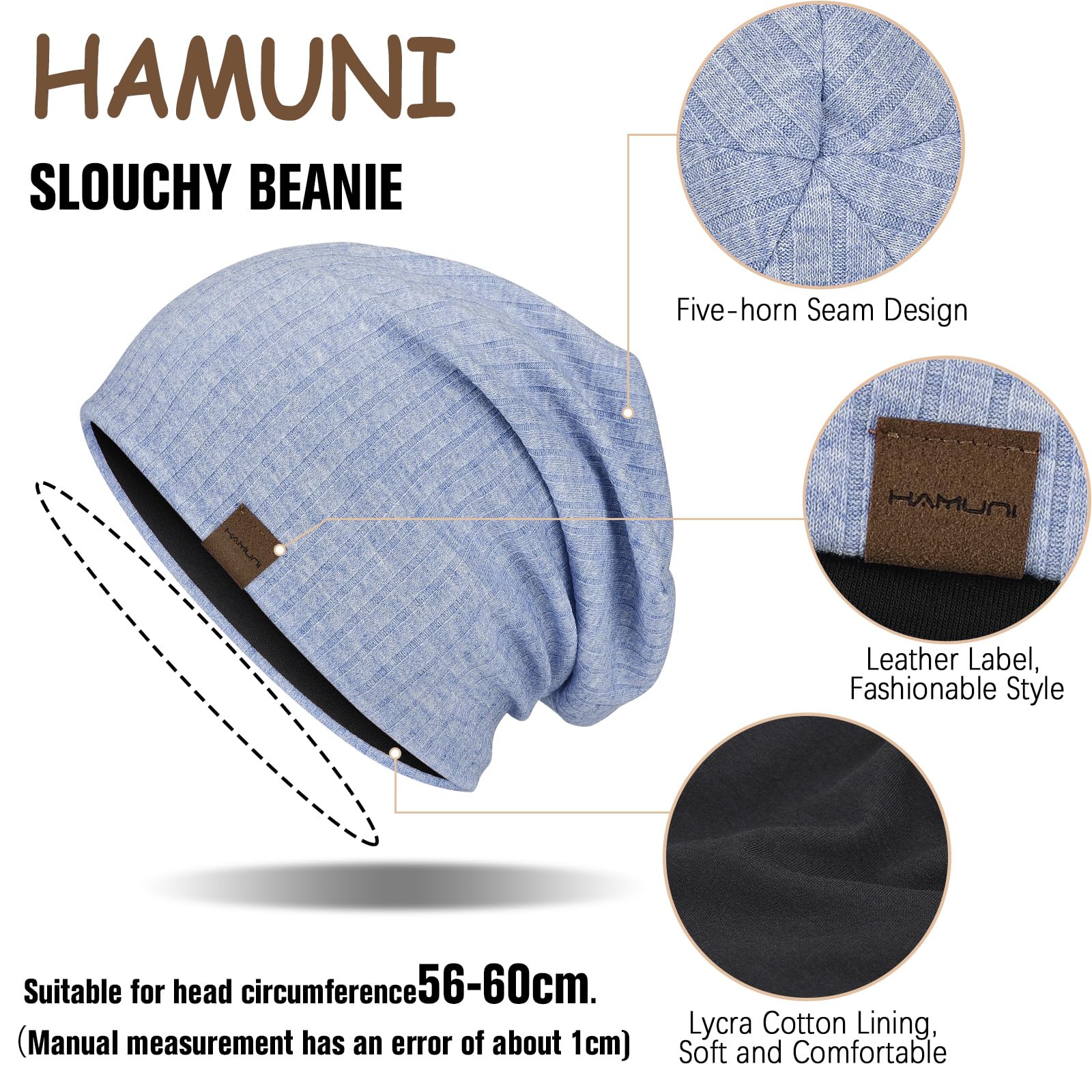 HAMUNI Beanie Hat Unisex Skull CapMaterial: 25% Rayon, 69% Polyester und 6% SpandexALL SEASON: Geeignet für Frühling bis Sommer und Herbst bis Winter. Kann mit langen Pullover, Schal, Leggings und Stiefeln getragen werden. Sowohl Anzug für Männer als auch Frauen, auch für Jugendliche.Es kann eine klassische slouchy Mütze, Totenkopf Mütze, Schlafmütze, Nachtmütze, Chemo Mütze oder Krebs Kopfbedeckung für Männer und Frauen sein. Täglich für drinnen und draussen verwendet. Geeignet für alle JahreszeitenEinfache Pflege: Volldeckender Kopf, Anti-Rutsch und Anti-Falten, Handwäsche in kaltem Wasser, kein Schrumpfen, kein Verblassen, kein Pilling. Die eleganten Mützen können ideale Geschenke für Ihre Familie oder Freunde sein.