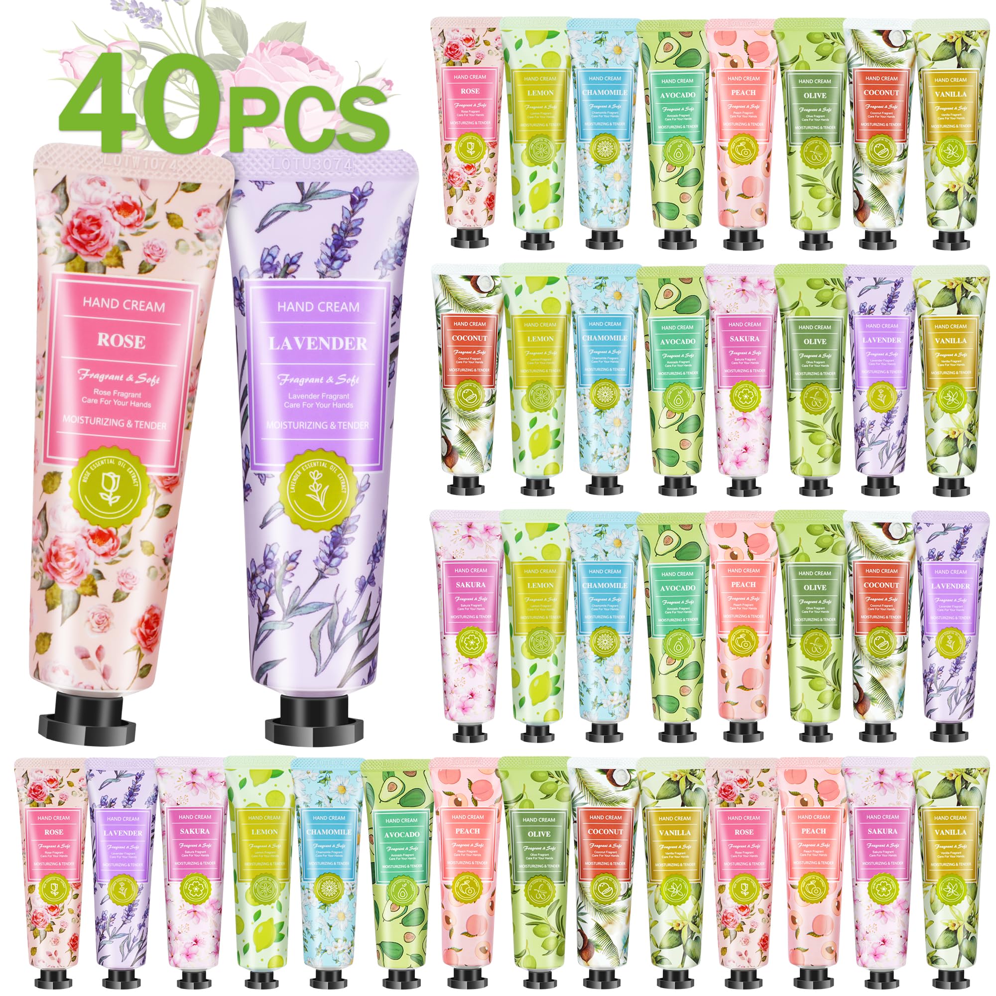 Handcreme Set, Mini Handcreme Geschenkset für Frauen, 40 Stück Handpflege für Sehr Trockene Rissige Hände Haut Reisegrösse Feuchtigkeitscreme klein Pflegecreme Körperlotion Geburtstag