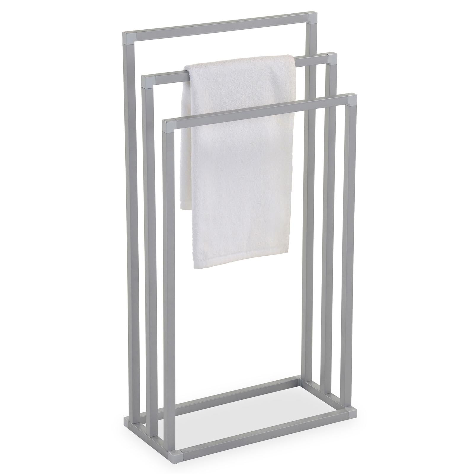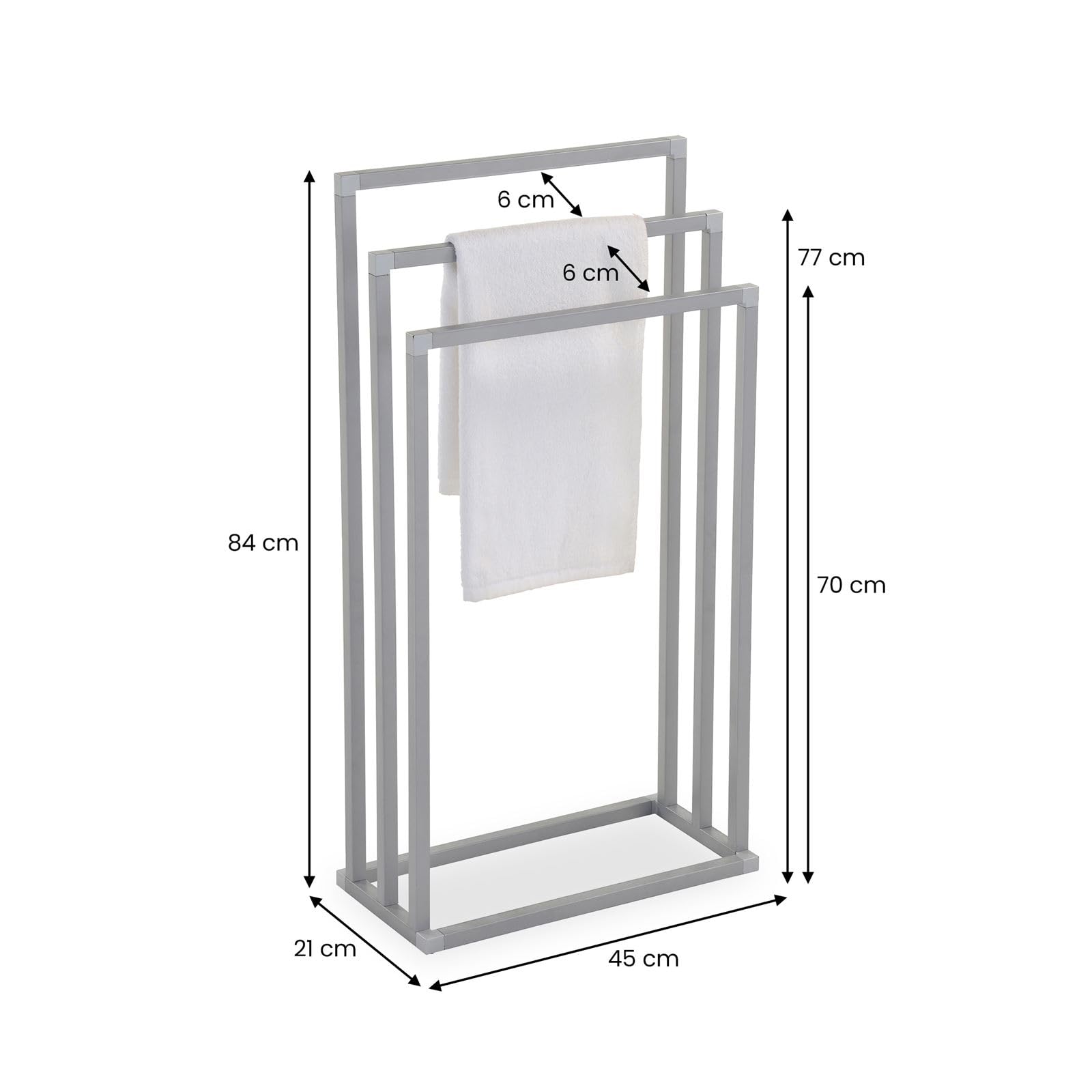Handtuchhalter KUNO, hellgrau lackiert - freistehender Badetuchhalter mit 3 Stangen, Handtuchständer aus Metall