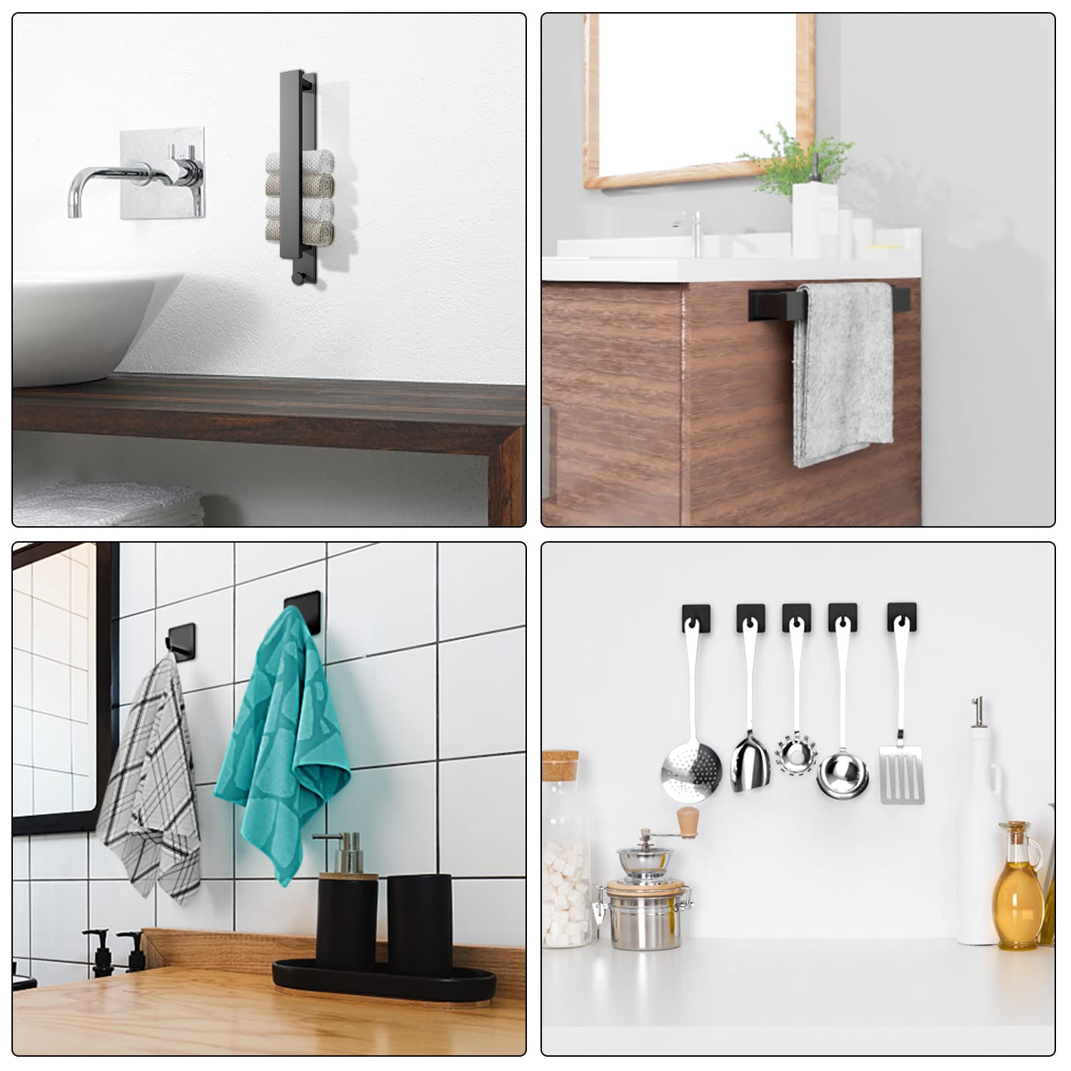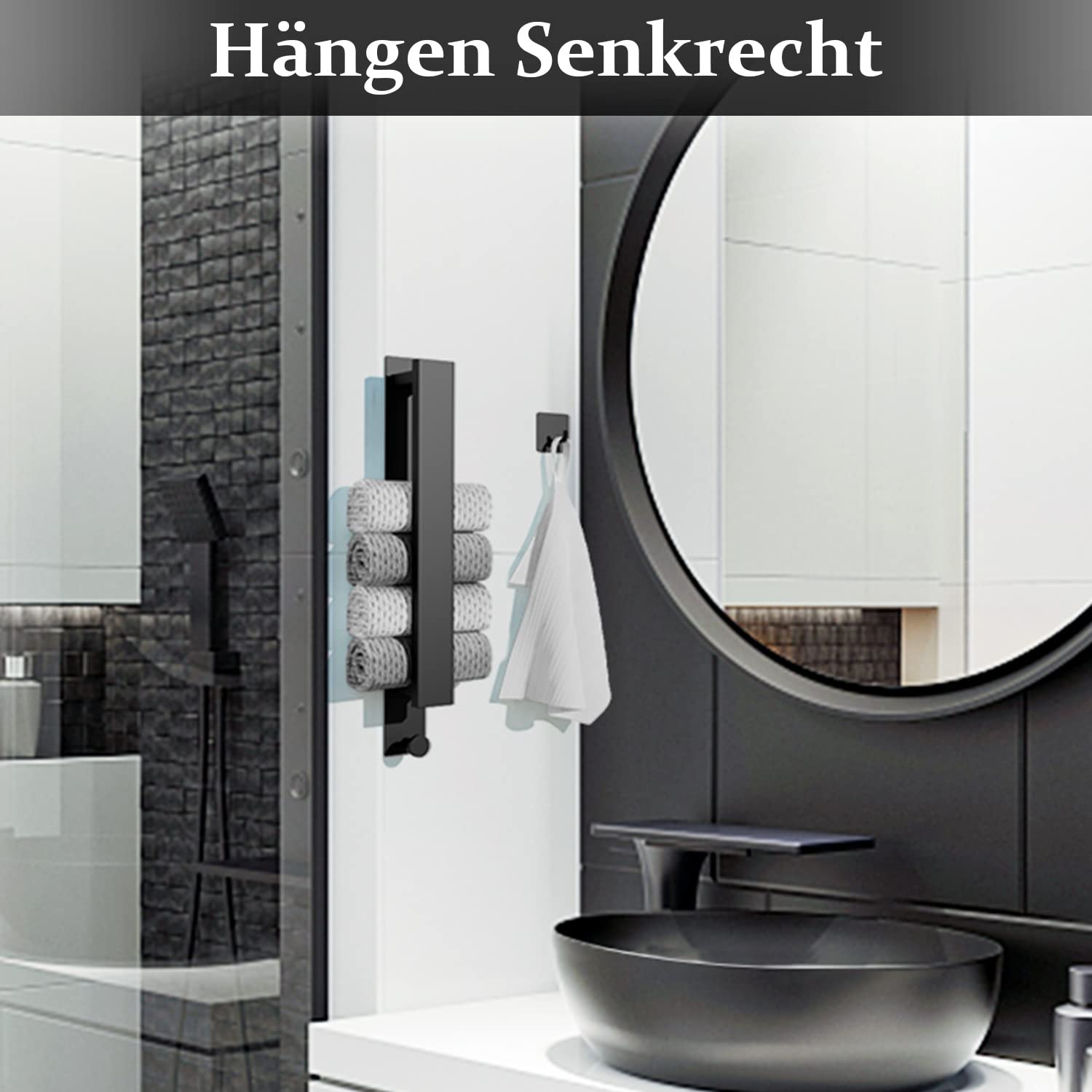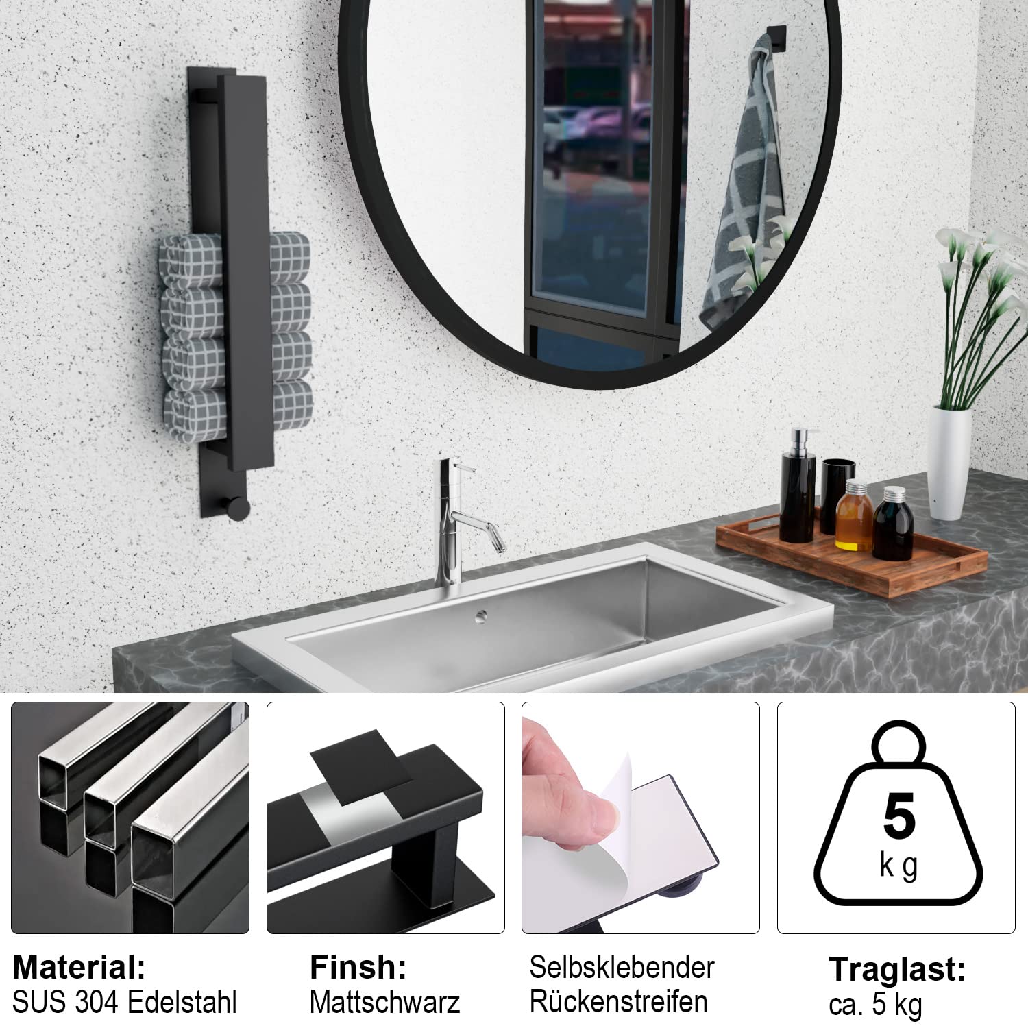 Handtuchhalter Ohne Bohren, Gästehandtuchhalter Selbstklebend, Edelstahl Handtuchstange Wandmontage mit 2 Handtuchhaken für Badezimmer und Küche (40cm,Matt Schwarz)