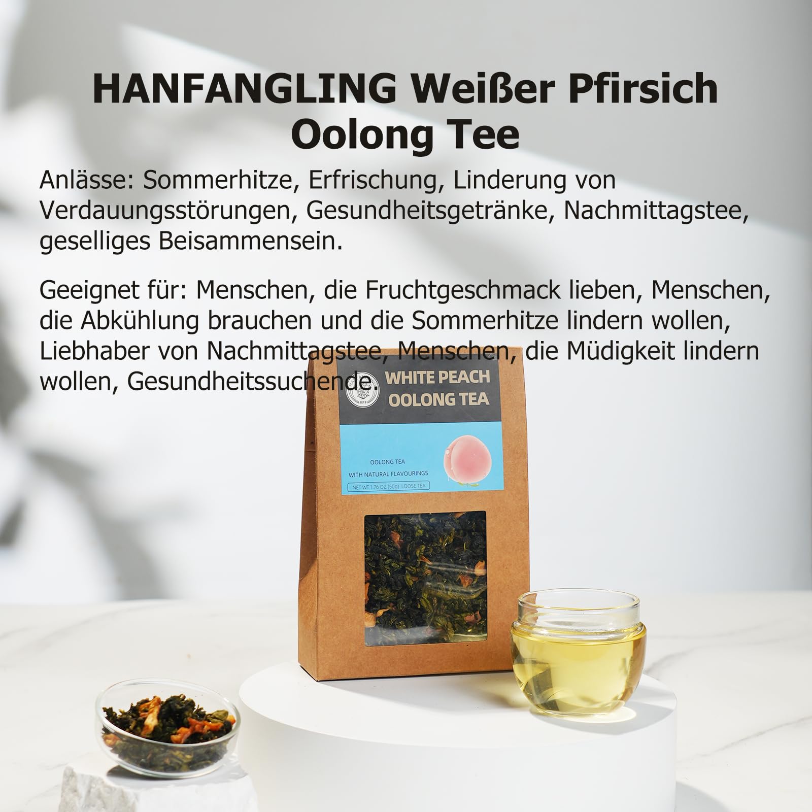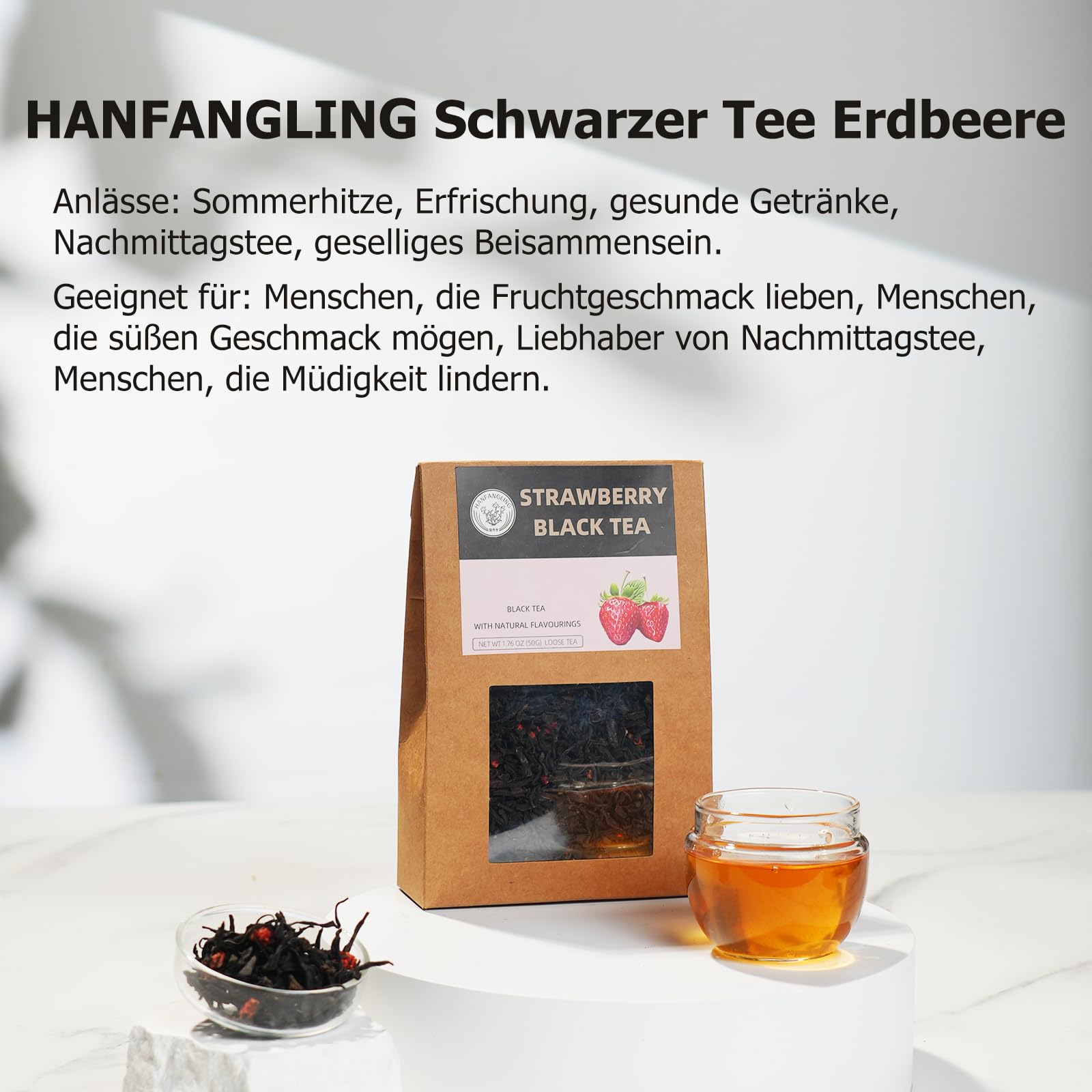 HANFANGLING Tee Geschenkbox, Weisser Pfirsich Oolong Tee, Jasmin Grüner Tee, Erdbeere Schwarzer Tee, Drei Früchteteemischungen, Schön Verpackt