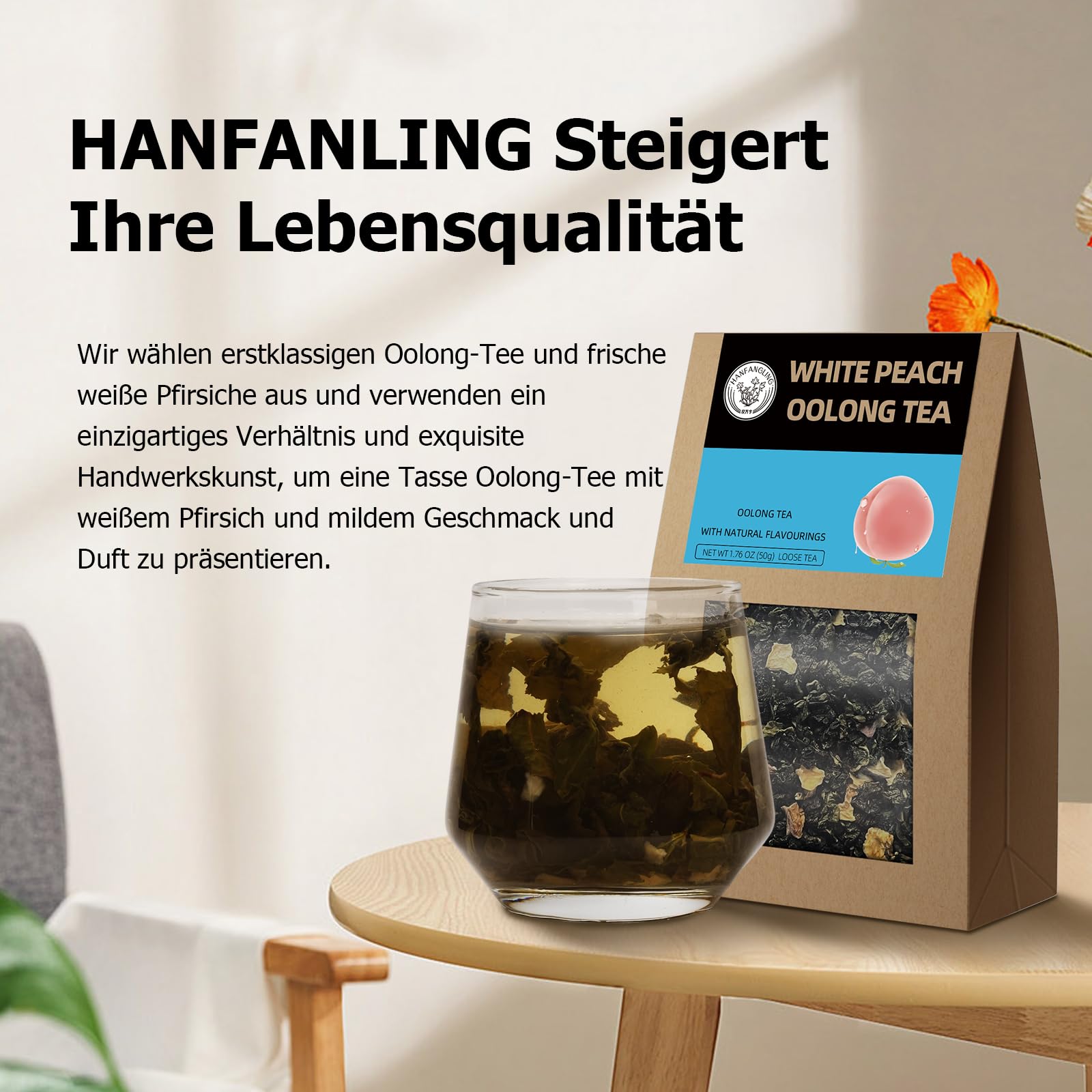 HANFANGLING Weisser Pfirsich Oolong Tee, 2Stück, Natürlicher Loser Tee, Vertreibt Müdigkeit, Erfrischt den Geist, Koffeinersatz, Fördert die Verdauung, Erfrischend Süss und Aromatisch im Geschmack