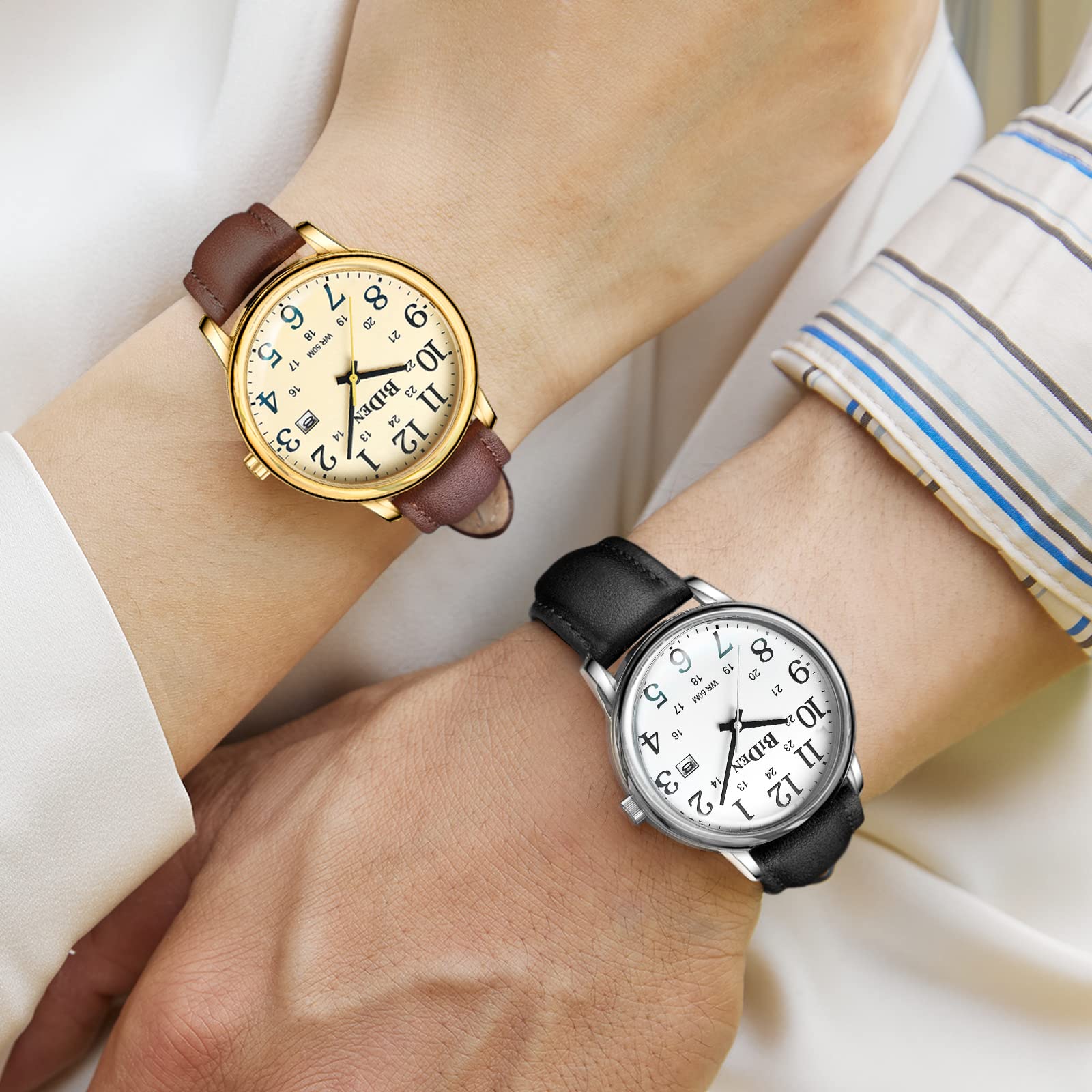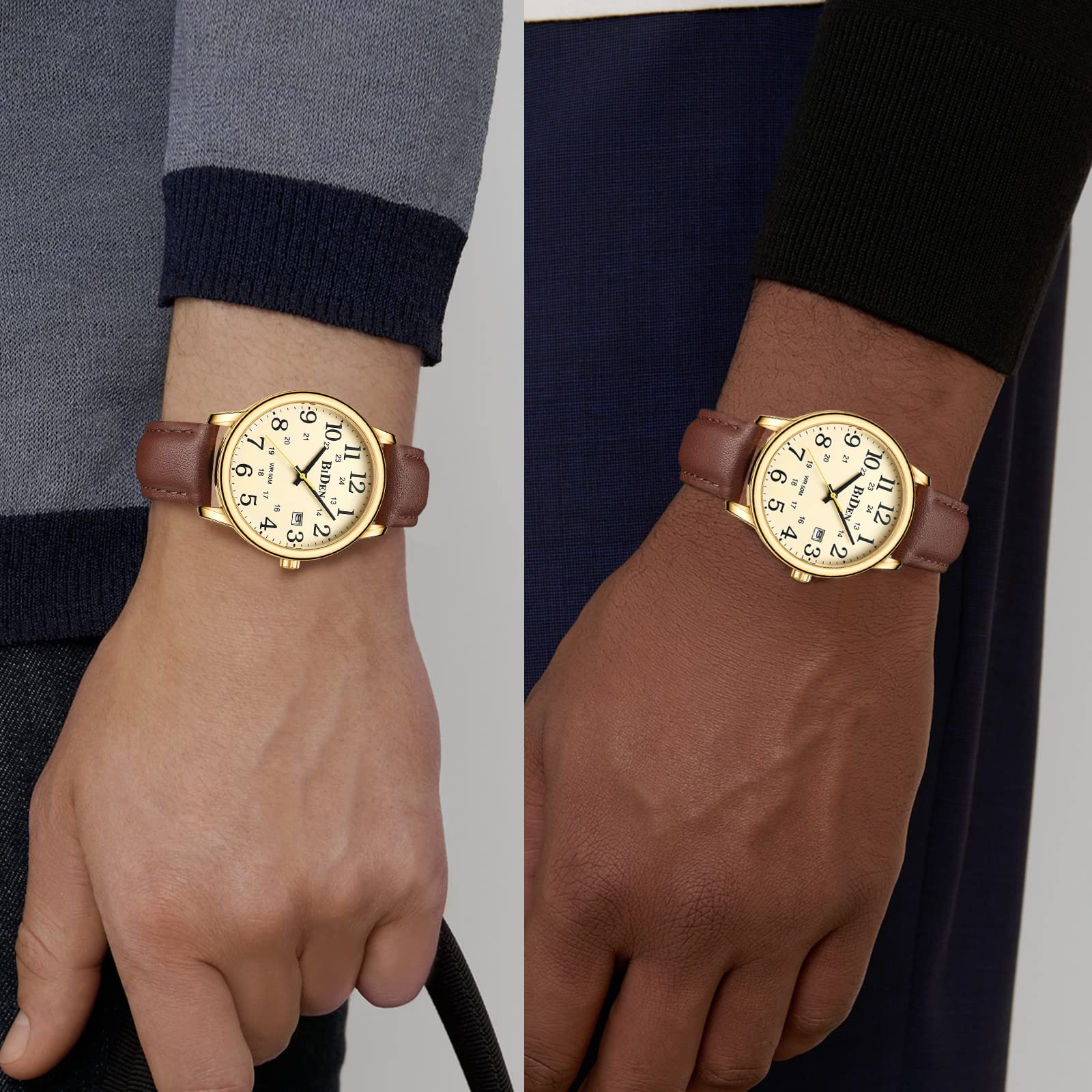 HANPOSH Uhren Herren Herren Uhr Analog Quarz Uhren für Männer Wasserdicht Armbanduhren Herren Mode Business Uhr mit Datum Leder Band