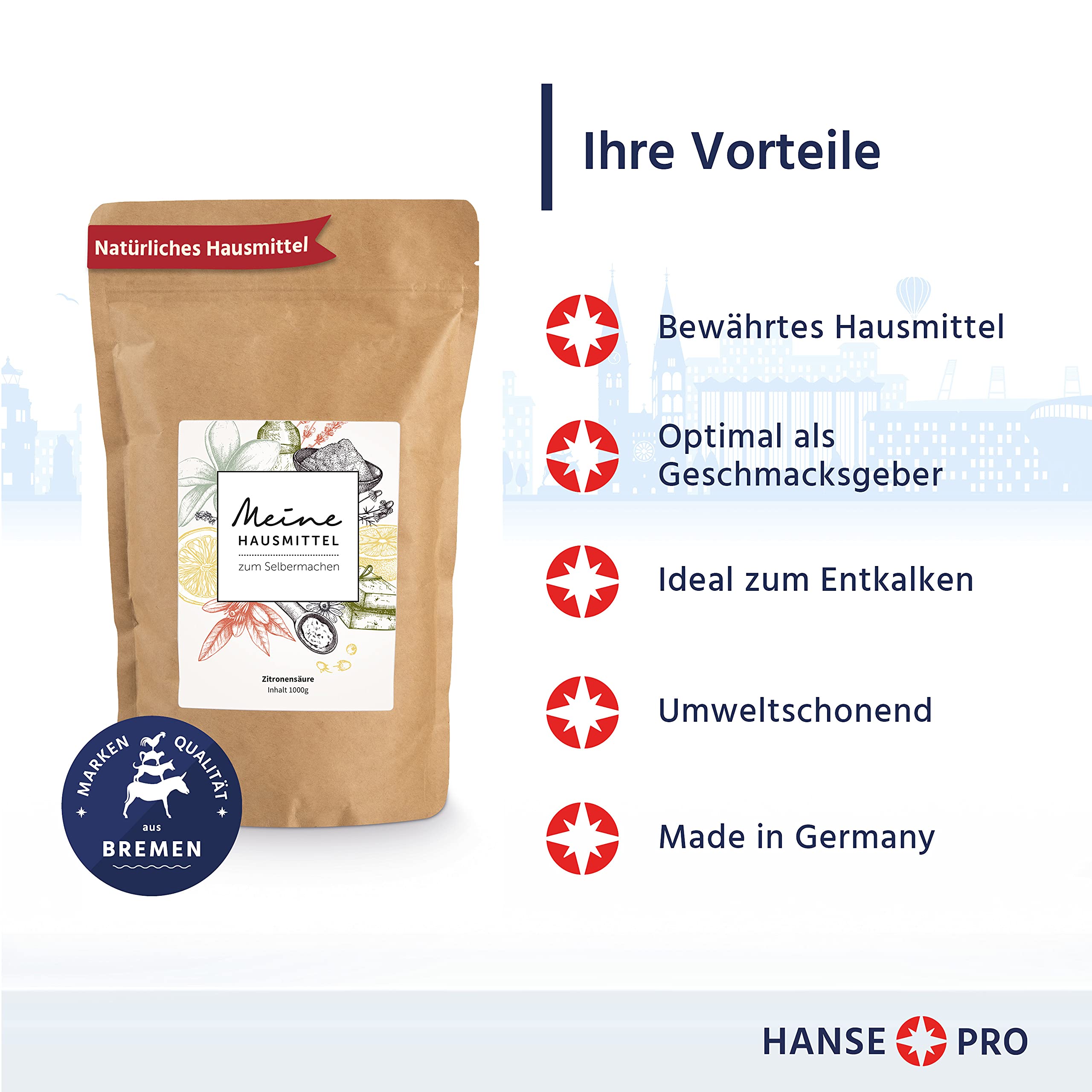 HANSE PRO Zitronensäure, 1 x 1000 g I Pulver I Natürliches Hausmittel I hochwertige Qualität I Entkalker I Konservierungsmittel