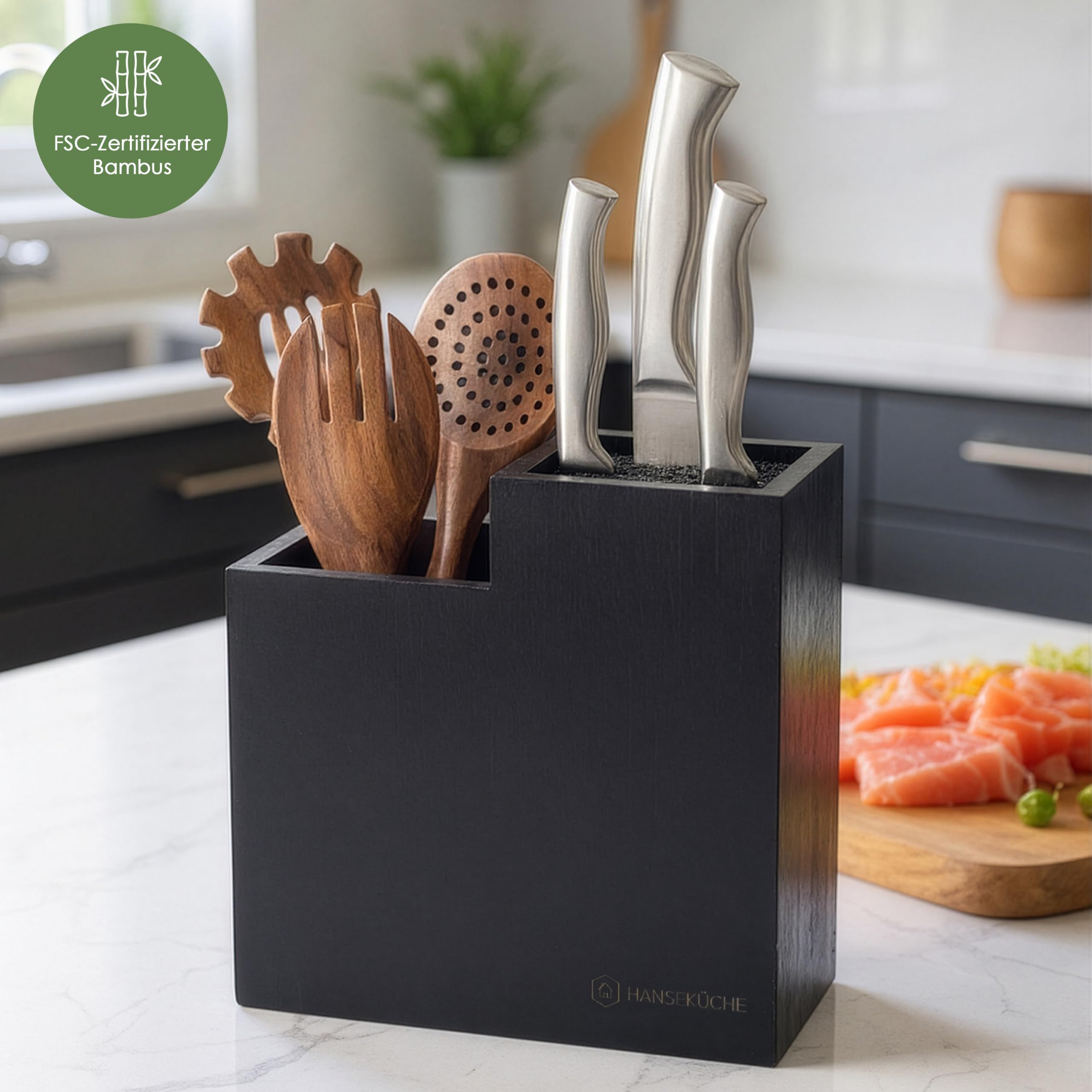 Hanseküche Messerblock - Messerhalter ohne Messer aus Holz Messerbrett (Bambus, Extra Breit)