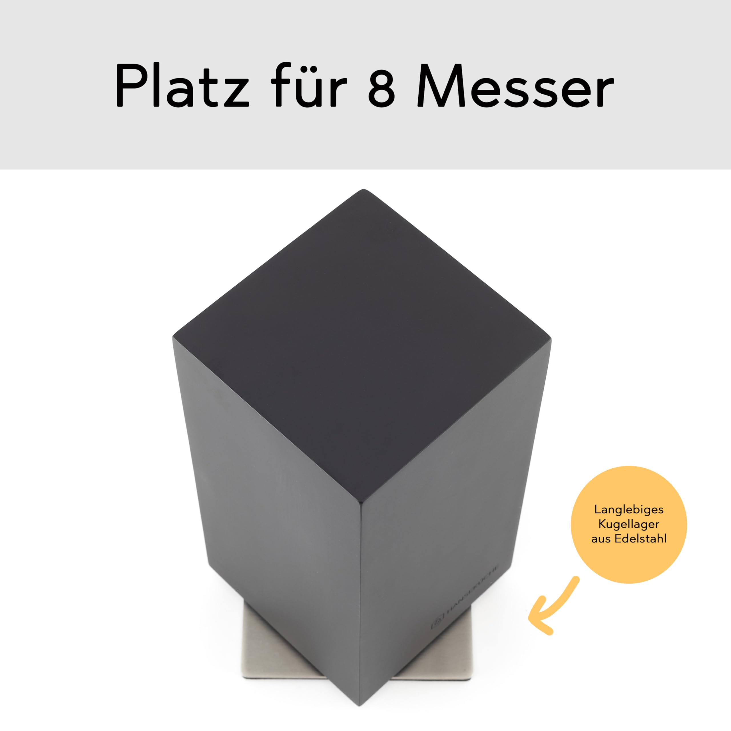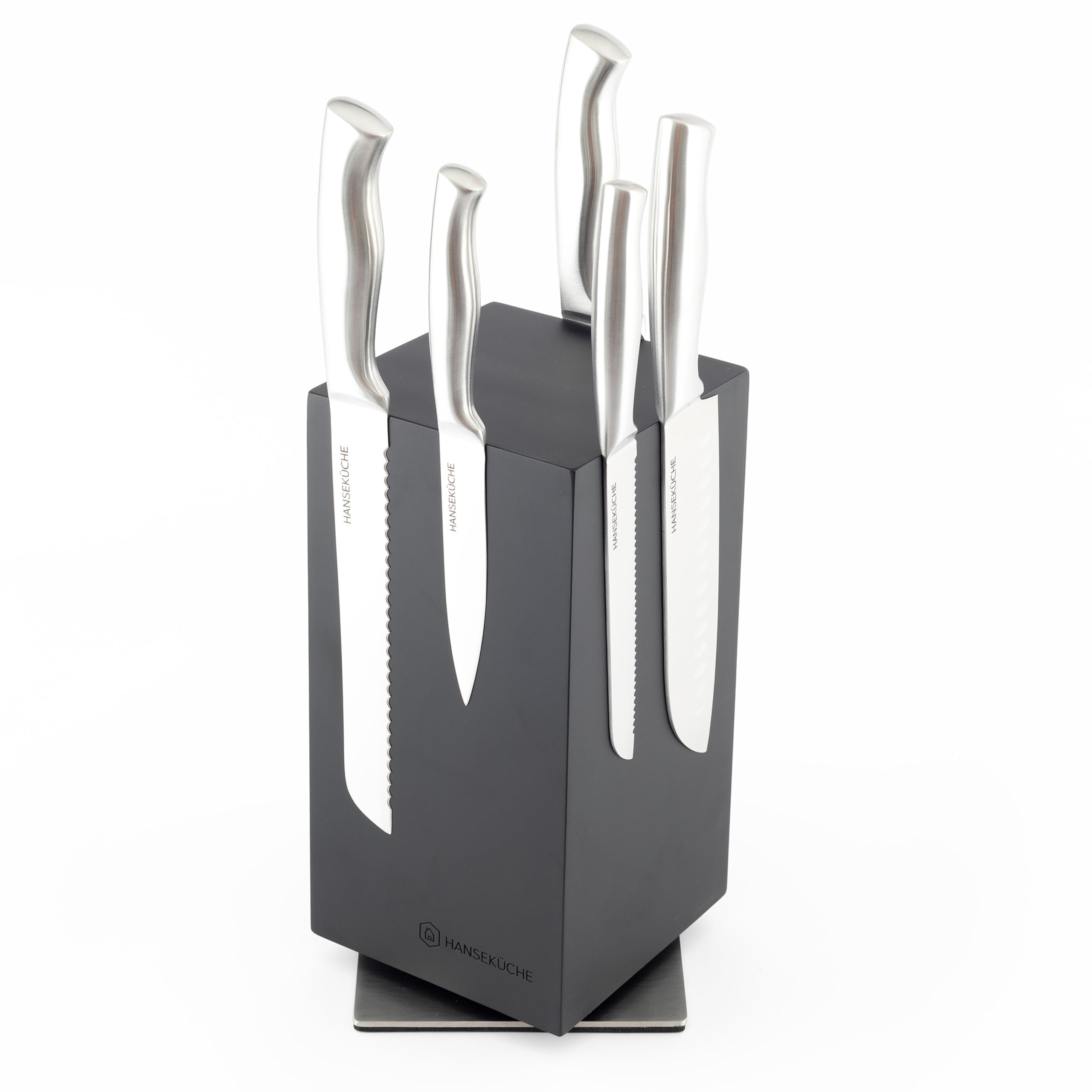 Hanseküche Messerblock - Messerhalter ohne Messer aus Holz Messerbrett (Akazie Schwarz Metallboden, Rotierend)