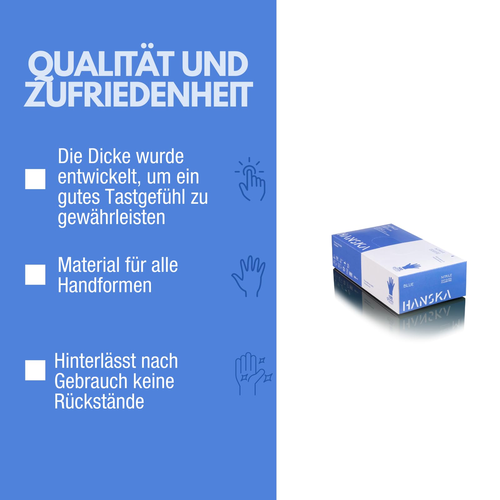 HANSKA 500 Blau Nitril-Einweghandschuhe – puderfrei – Einweg – beidhändig tragbar – unsteril – Gummibasis – Geeignet für medizinische Bereiche und Lebensmittelverarbeitung (500, M)