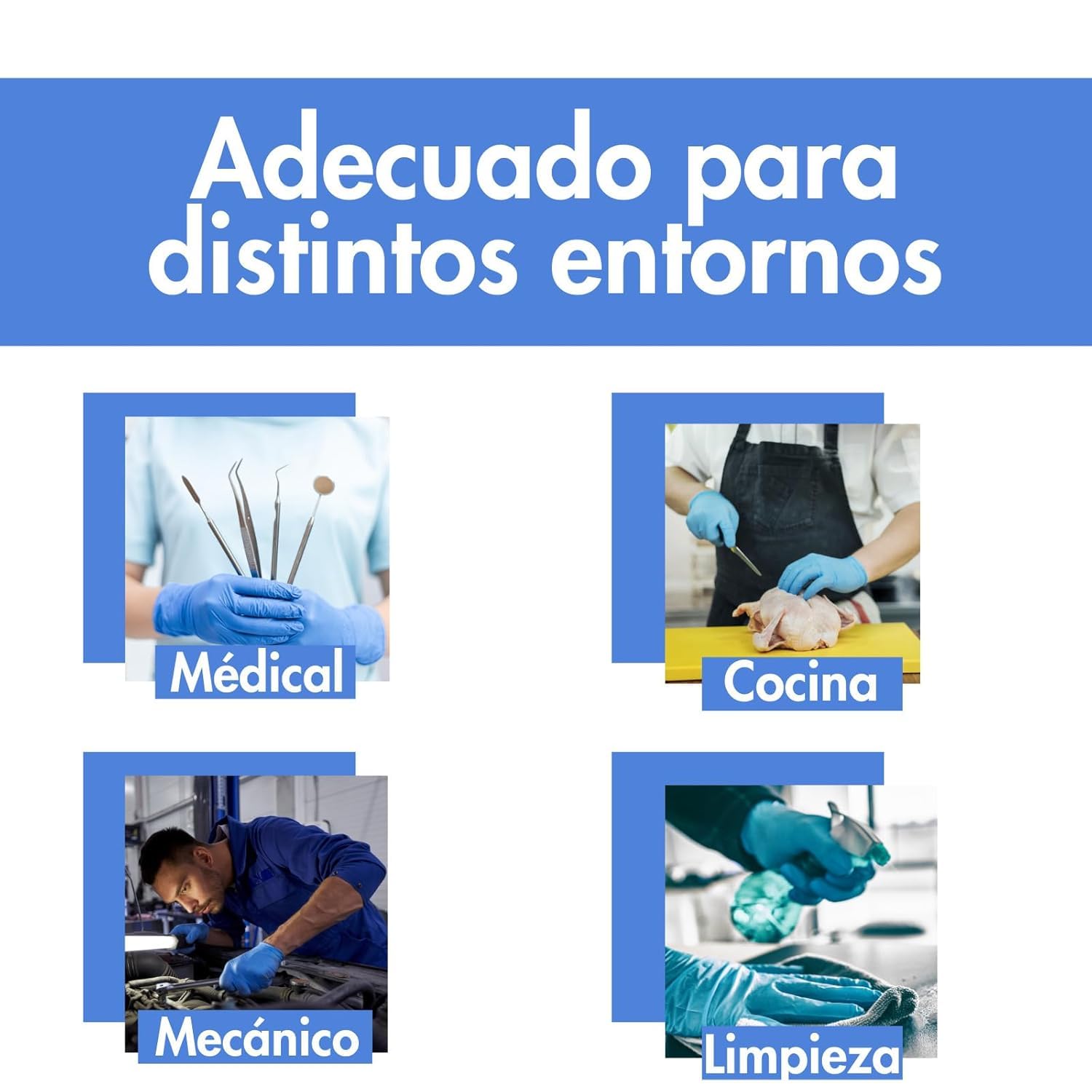 Unsterile Einweghandschuhe, hergestellt aus Nitril (NBR). LATEXFREI / EINKÖRPER / ELASTISCH PUDERFREI BLAUE Einweghandschuhe aus Nitril, unsteril, beidhändig verwendbar