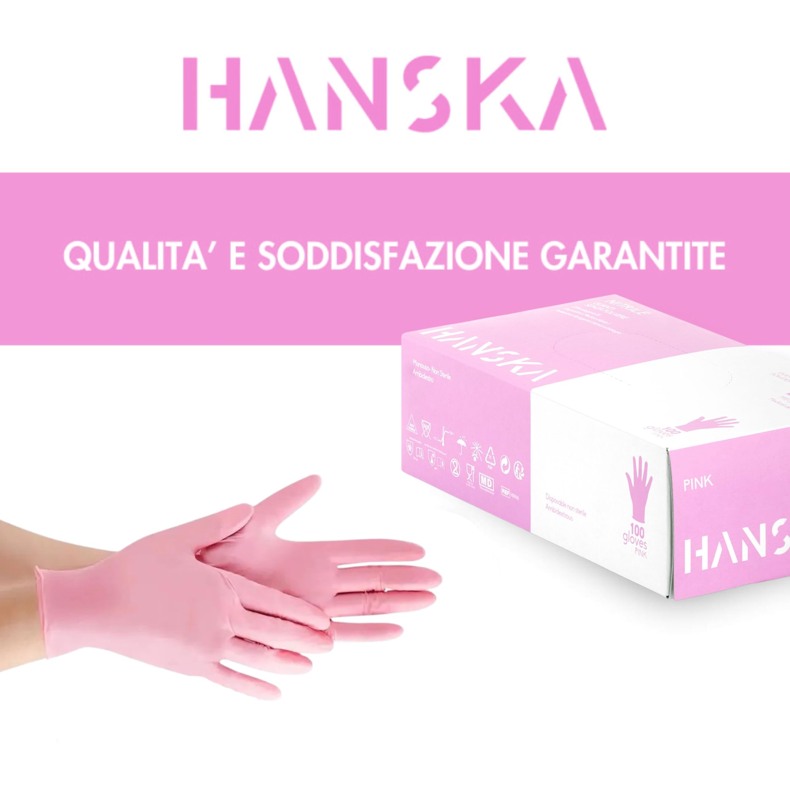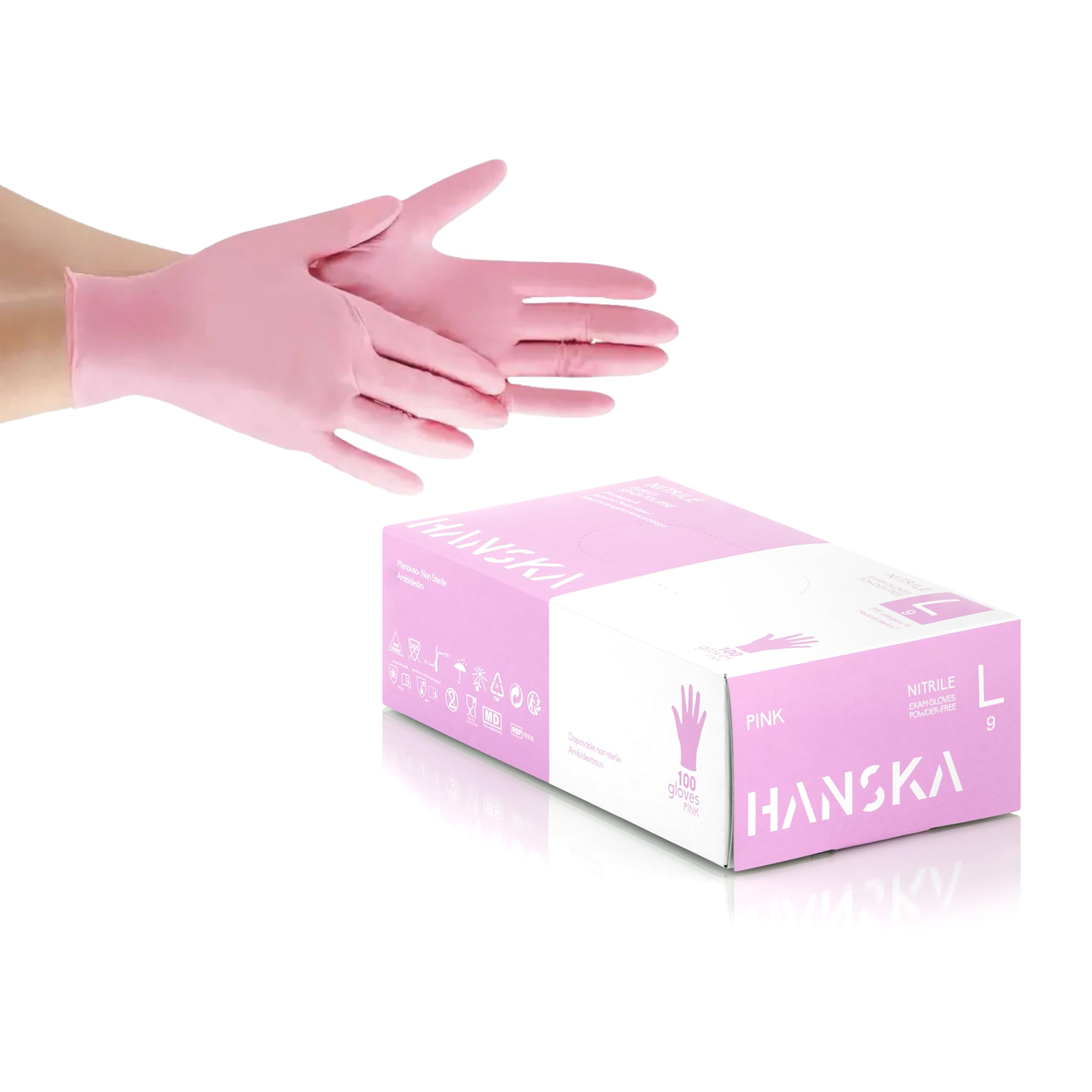 HANSKA 100 rosa Nitril-Einweghandschuhe – puderfrei – Einweg – beidhändig tragbar – unsteril – Gummibasis – Geeignet für medizinische Bereiche und Lebensmittelverarbeitung (100, L)
