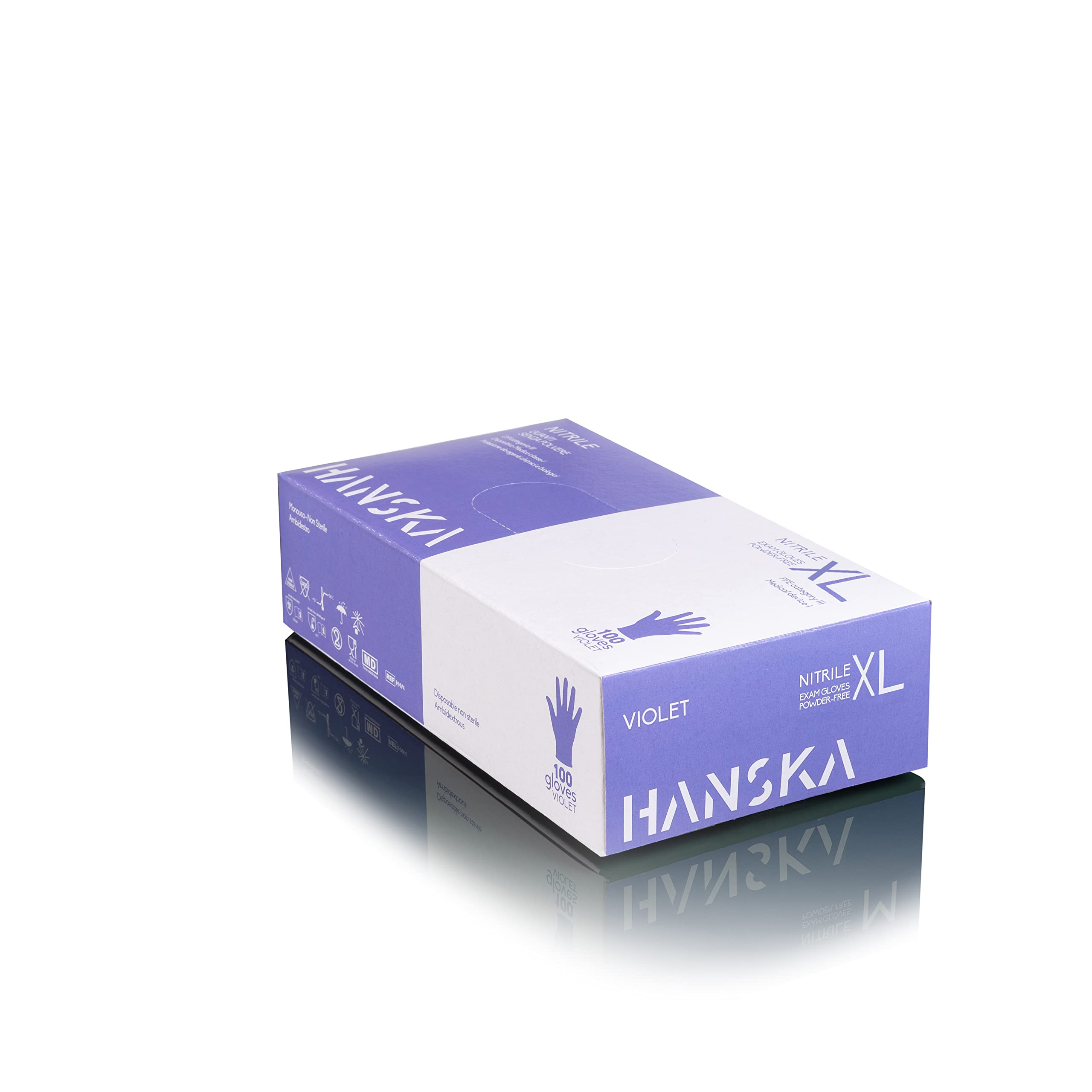 HANSKA 1000 violette Nitril-Einweghandschuhe – puderfrei – Einweg – beidhändig – nicht steril – Gummibasis – geeignet für medizinische Bereiche, Handhabung von Lebensmitteln (1000, XL)