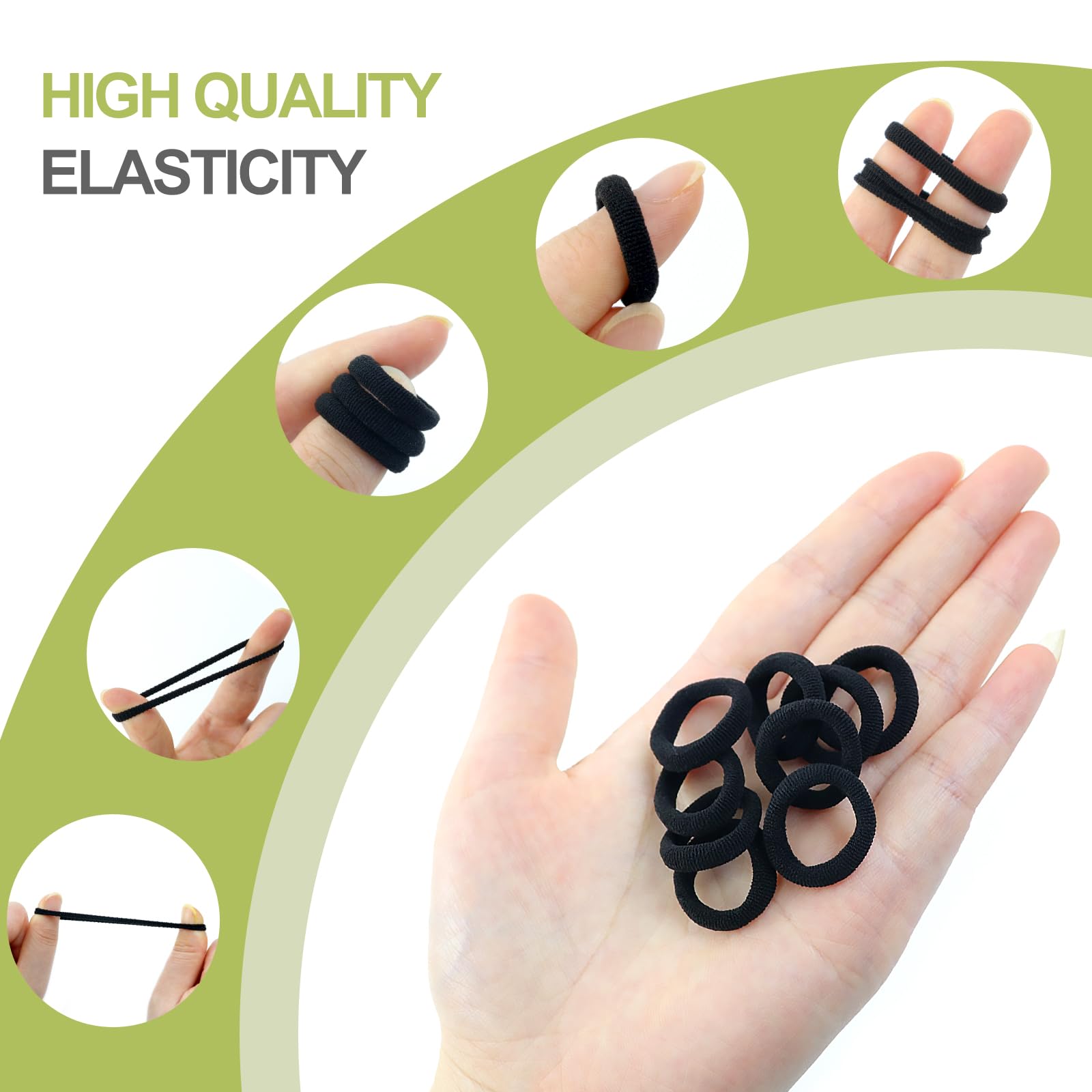 Hanyousheng 100 Stueck Mini-Haargummis fuer Maedchen & Babys, nahtlose kleine Zopfgummis (Schwarz)