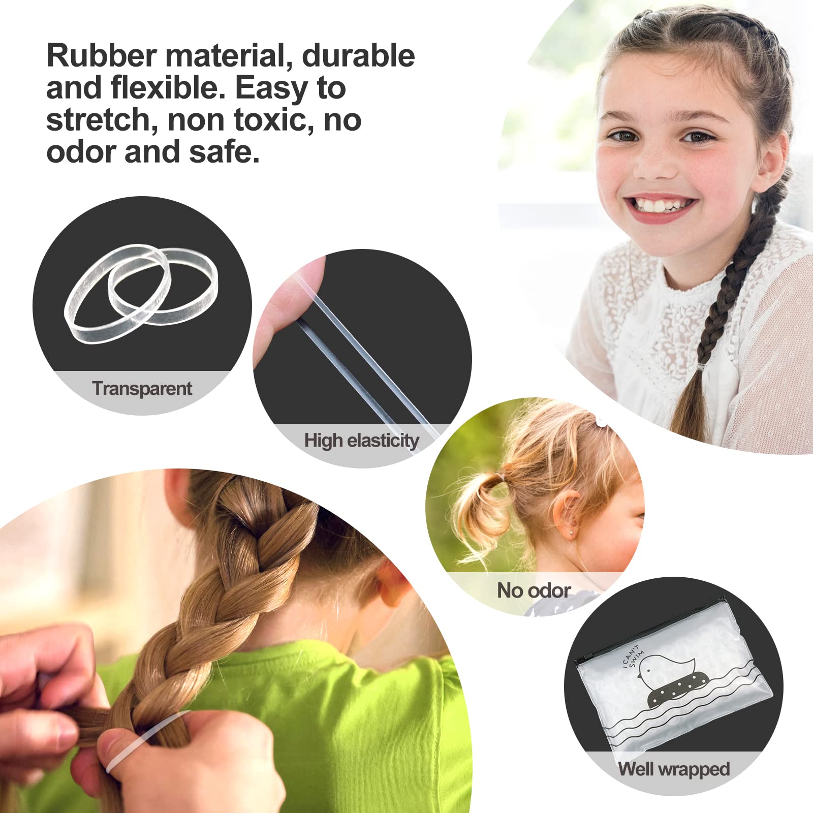 Hanyousheng 1000 Stueck Mini Haargummis Transparent fuer Kinder, Zoepfe & Hochzeitsfrisuren