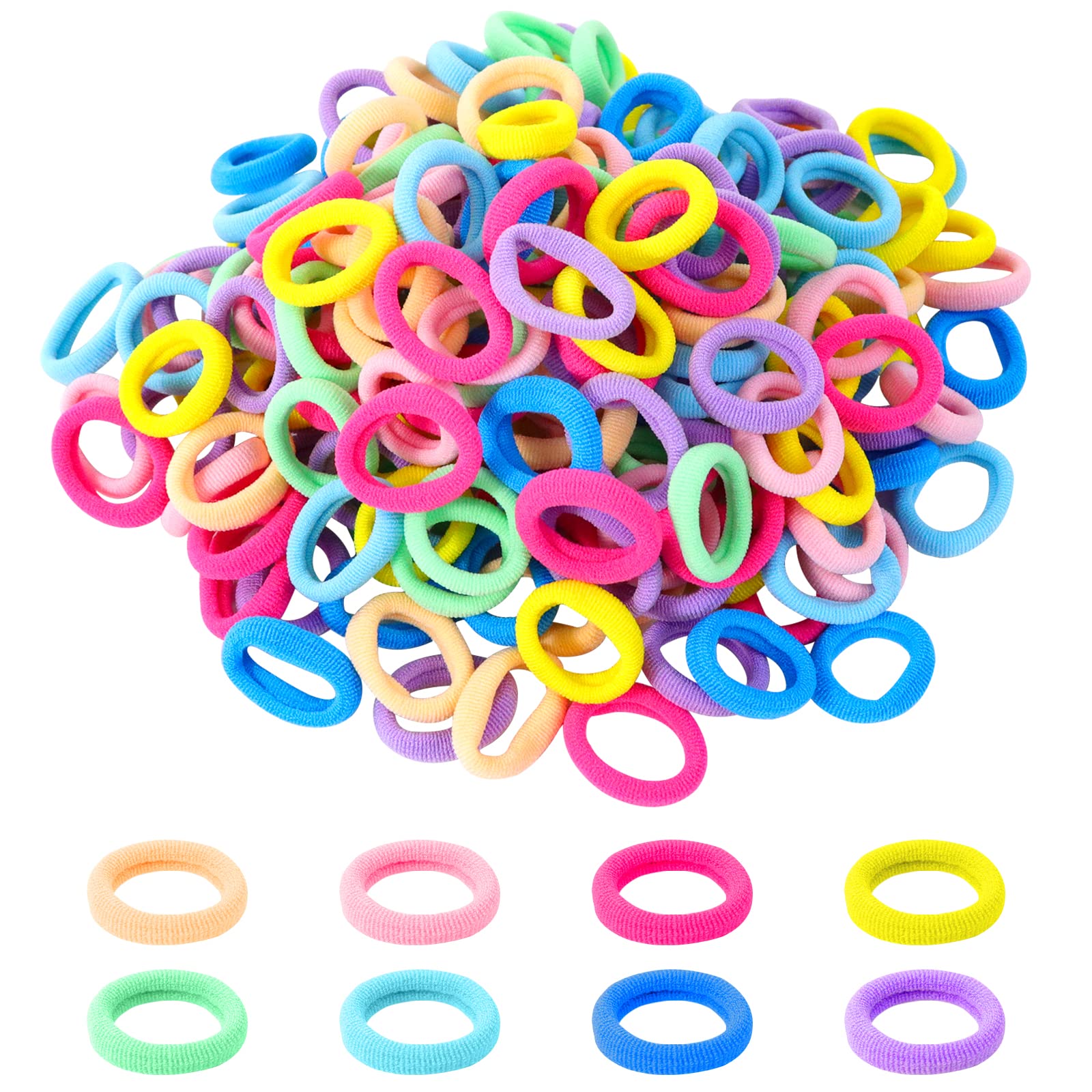 Hanyousheng Mini-Haargummis im 200er-Set, nahtlose Haargummis in 8 Farben, weich und elastisch für Babys, Kleinkinder und Mädchen