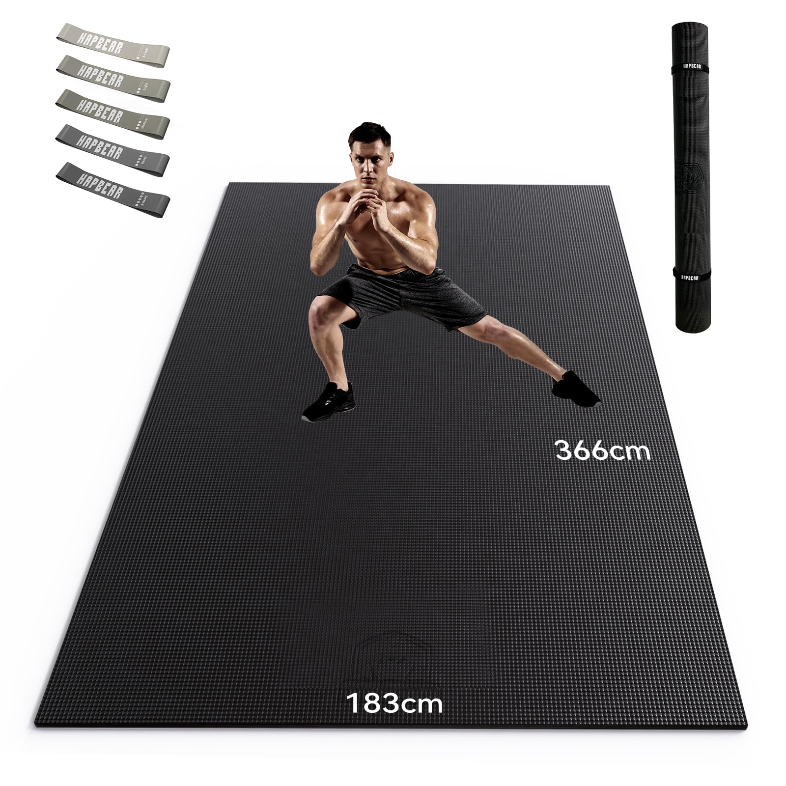HAPBEAR Extra Groß Breit Sportmatte Fitnessmatte Gymnastikmatte rutschfest-Yogamatte 366 cm x 183 cm x 8 mm Dicke, Hoher Dichte Ultra Haltbar PVC,Trainingsmatten mit Fitnessbänder, Schuhfreundlich-09