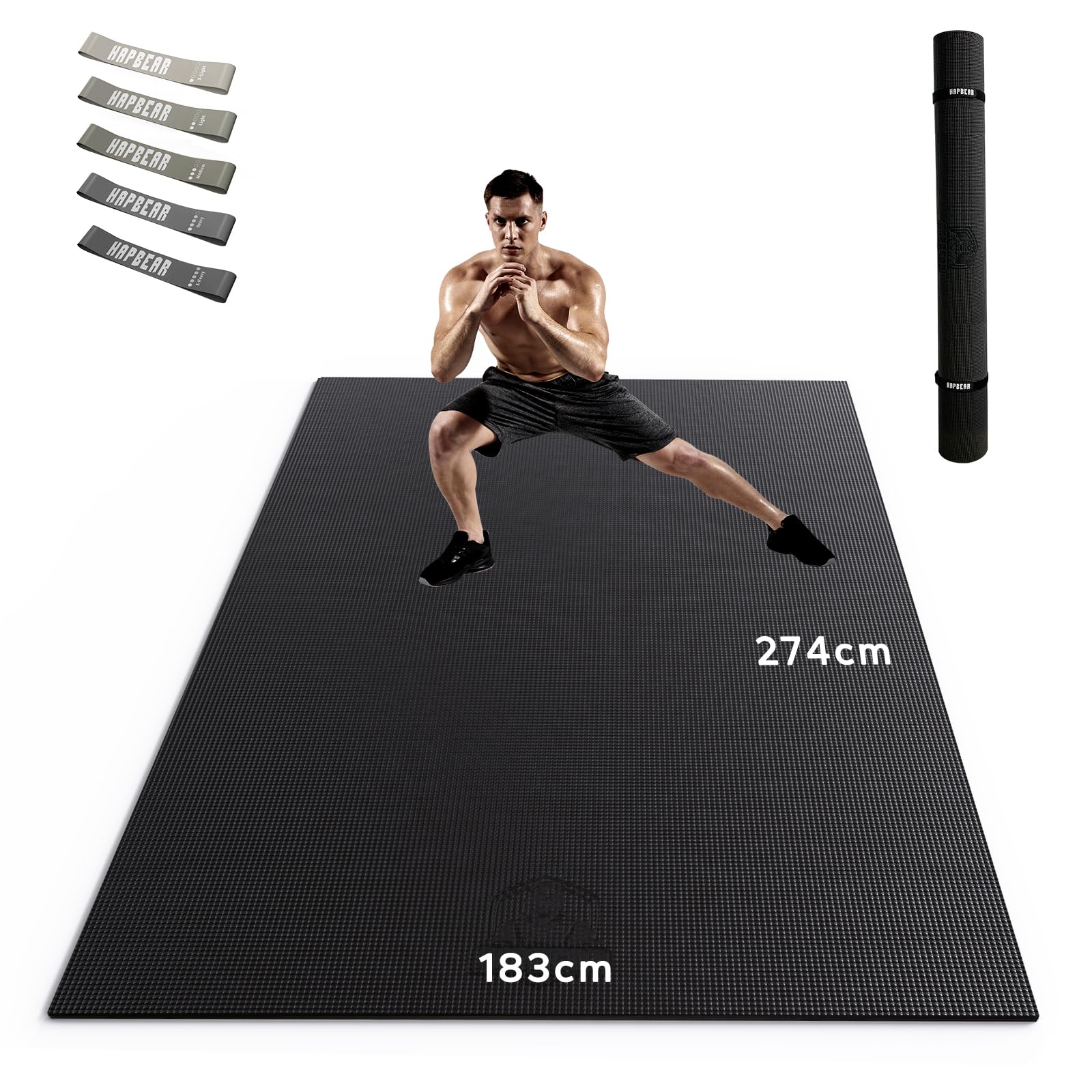 HAPBEAR Extra Groß Breit Sportmatte Fitnessmatte Gymnastikmatte rutschfest-Yogamatte 274 cm x 183 cm x 8 mm Dicke, Hoher Dichte Ultra Haltbar PVC,Trainingsmatten mit Fitnessbänder, Schuhfreundlich-06