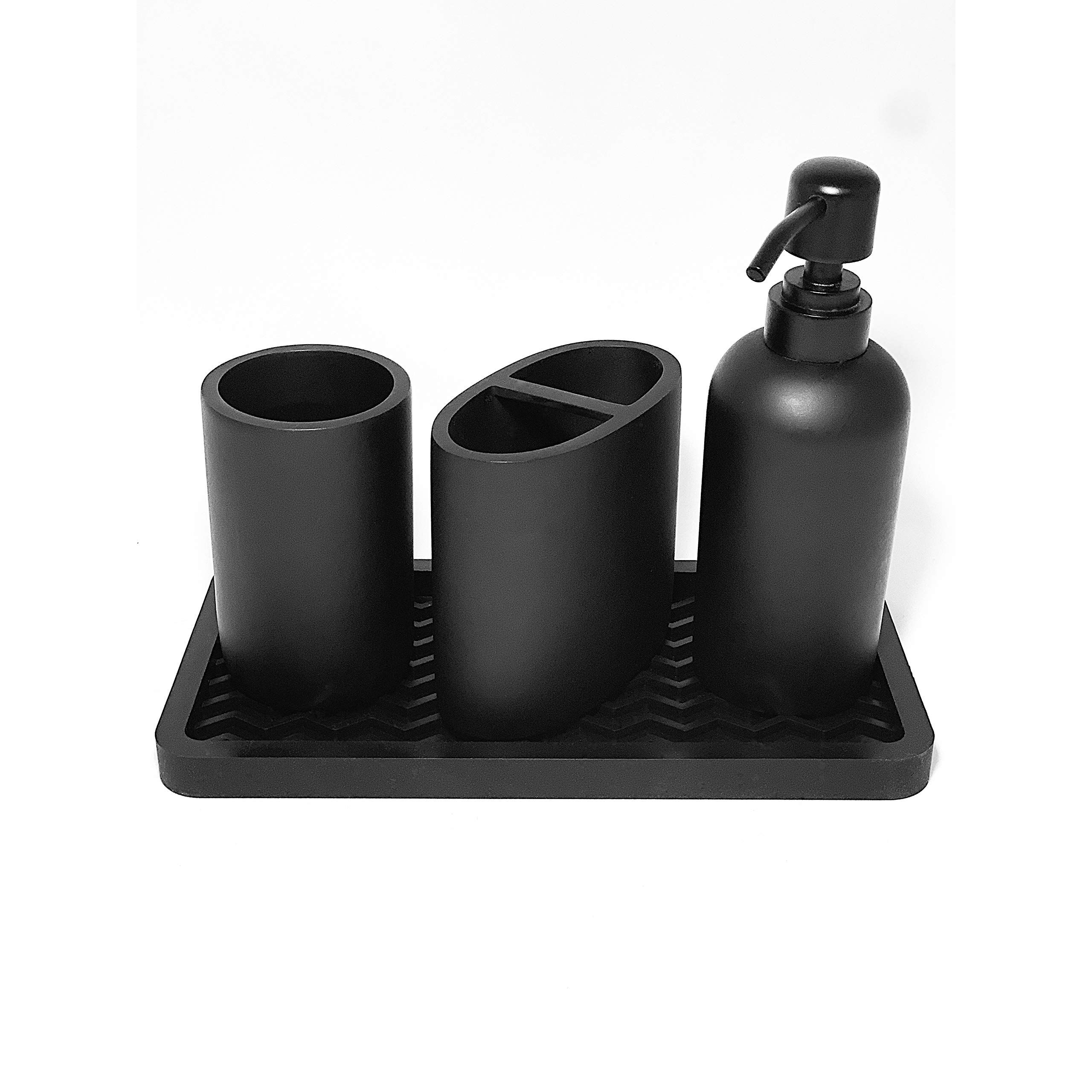 Happitasa Silikon-Küchenspüle-Organizer, Tablett und Schwammhalter, Zickzack-Stil (schwarz, 25,4 x 13,3 cm)