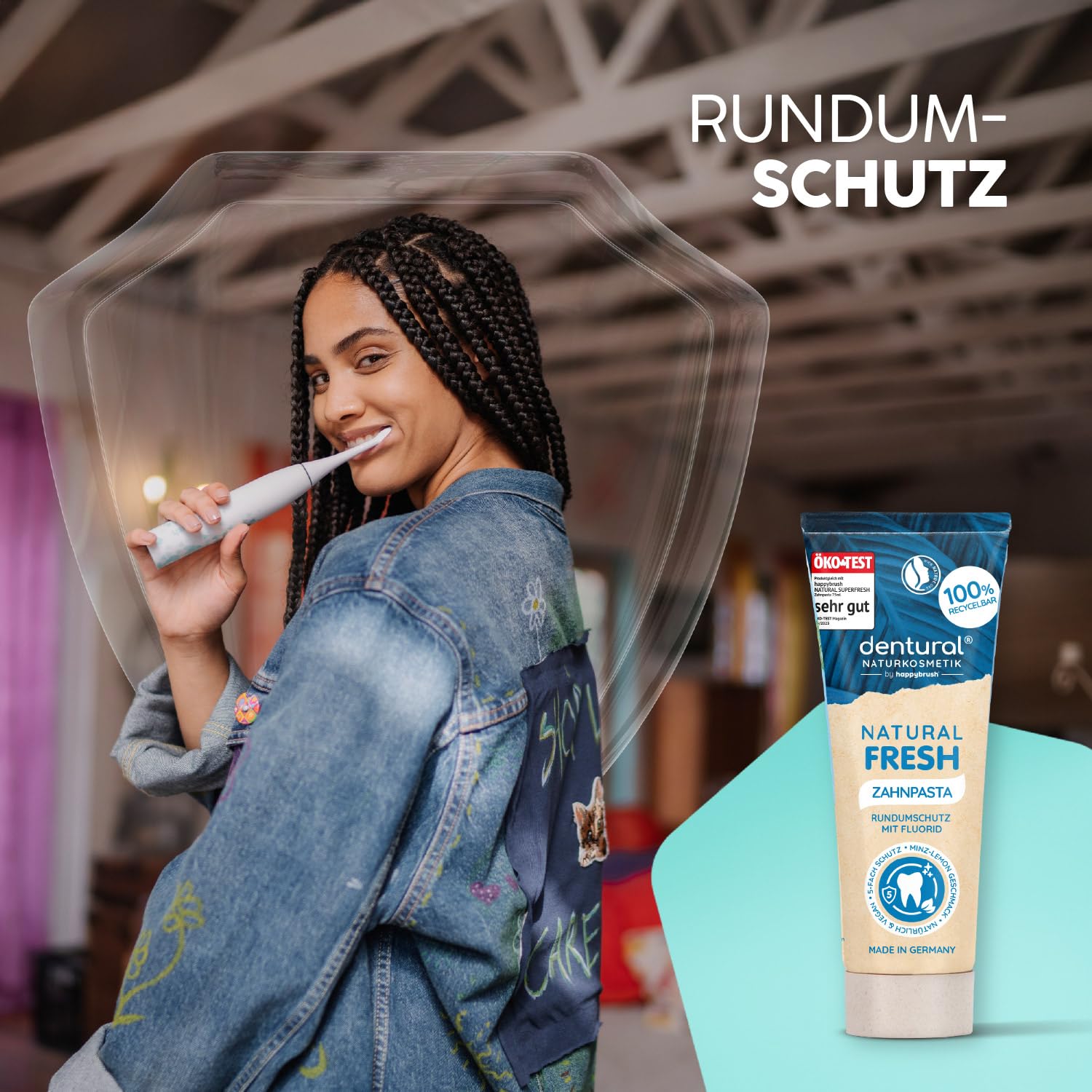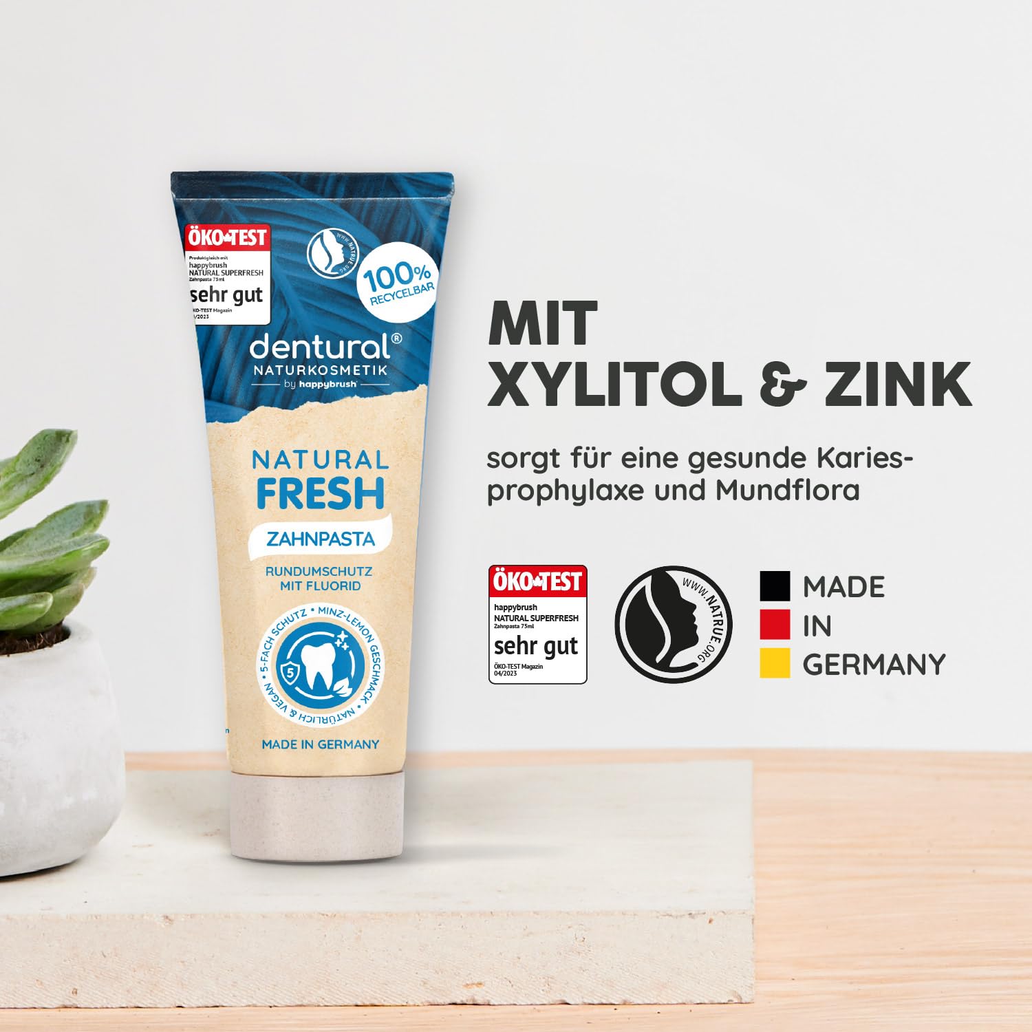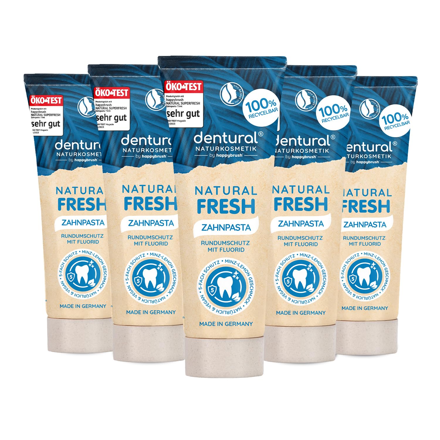 happybrush Naturkosmetik ZahnpastaNatural Fresh mit Minz-Lemon-Geschmack - Zahncreme mit 5-fach Schutz für deine Zähne mit Zink - Ohne Mikroplastik - 5er Pack (5 x 75ml)