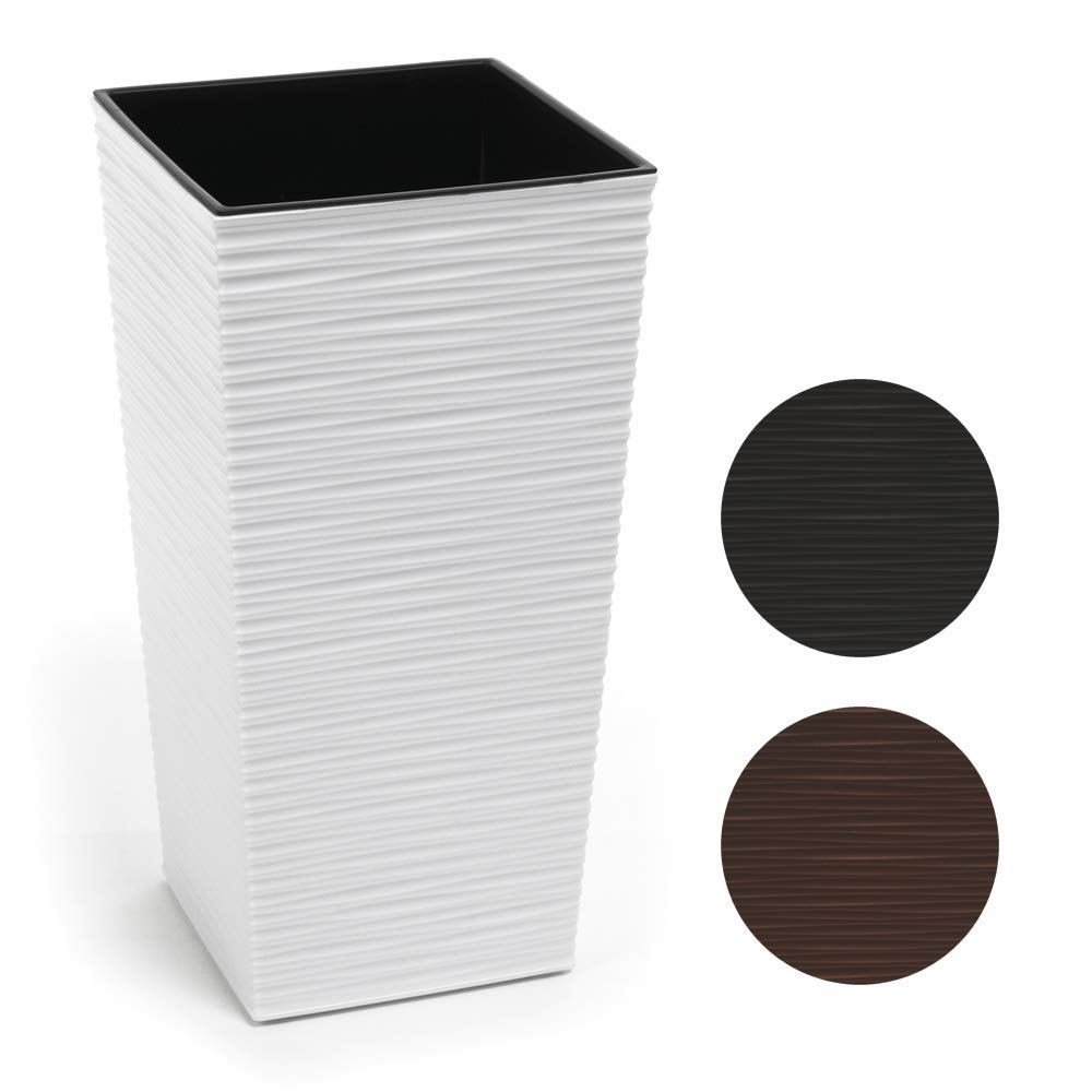 HappyFlower | Hoch Blumentopf | Pflanzkübel | inkl. Einsatz | Quadrat | Meissel-Optik | Übertöpfe (30 cm x 30 cm/Höhe 57 cm, Weiss)