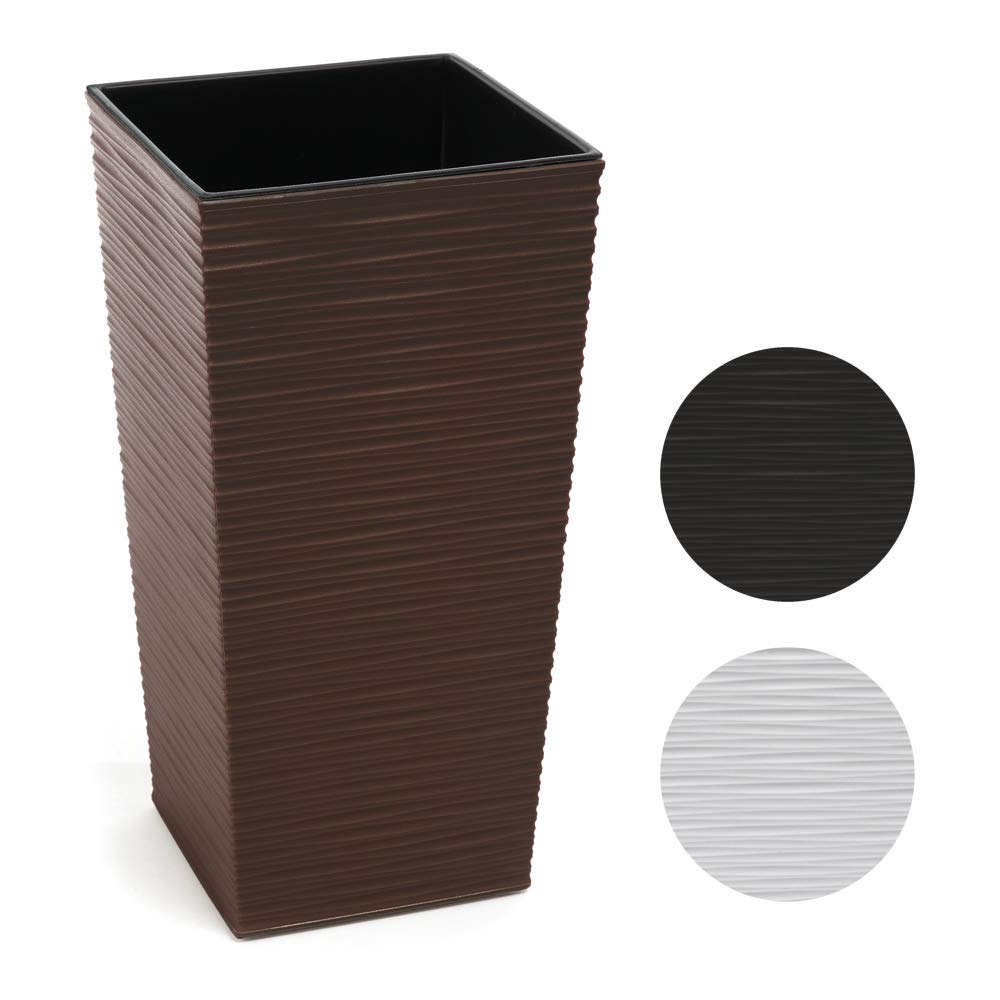 HappyFlower | Hoch Blumentopf | Pflanzkübel | inkl. Einsatz | Quadrat | Meissel-Optik | Übertöpfe (30 cm x 30 cm/Höhe 57 cm, Braun)