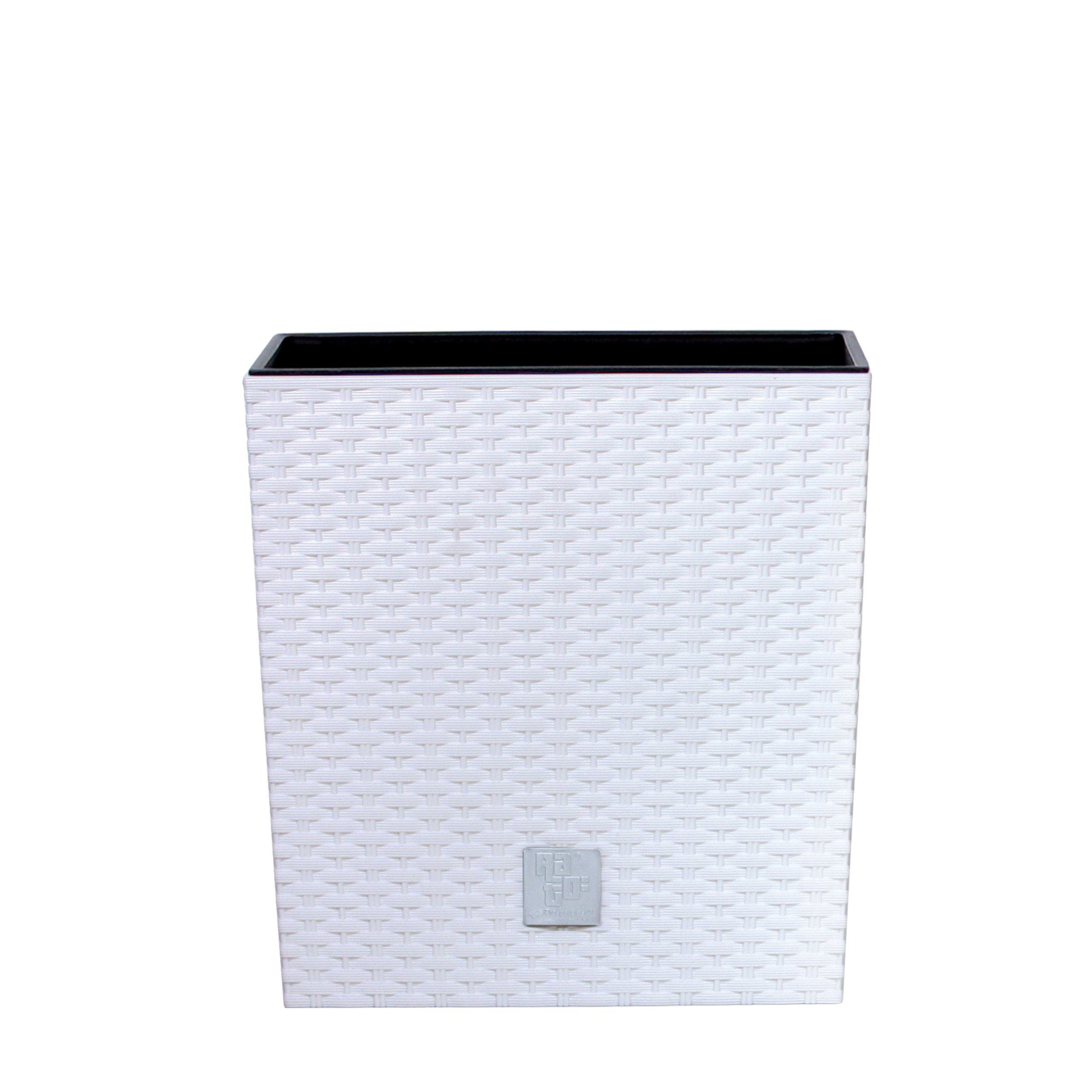 HappyFlower MultiProject Blumentopf Pflanzkübel inkl. Einsatz rund Rattan-Optik 7 Grössen 4 Farben Übertöpfe (17 cm x 17 cm/Höhe 17 cm, Weiss)
