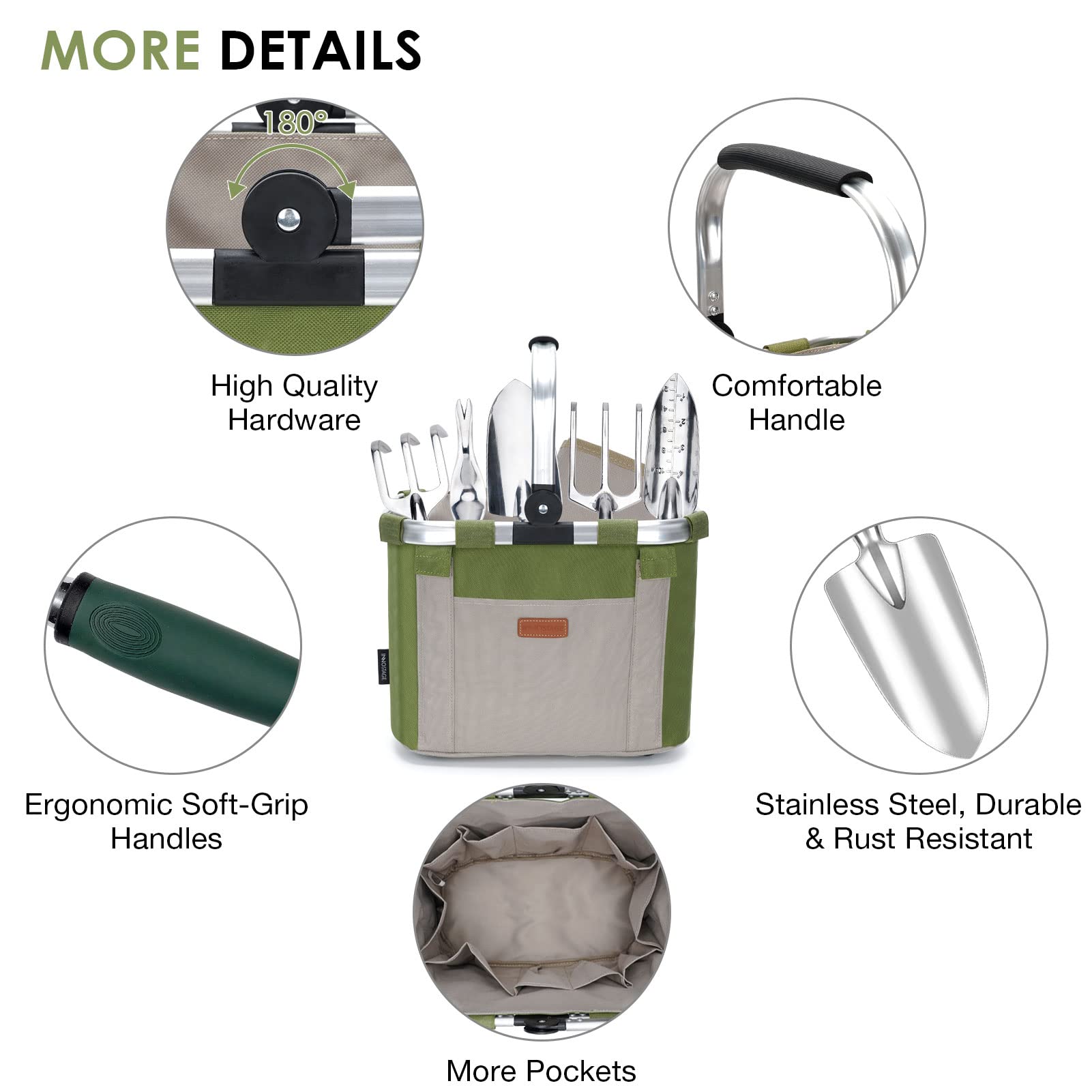 HappyPicnic Gartengeräte-Set mit 11 Stück Handwerkzeugen, Gartenwerkzeug-Tasche mit Hochleistungswerkzeugen, Gartenwerkzeug-Kit mit faltbarem Griff, Gartengeschenke für den Erntedankfest der Mutter
