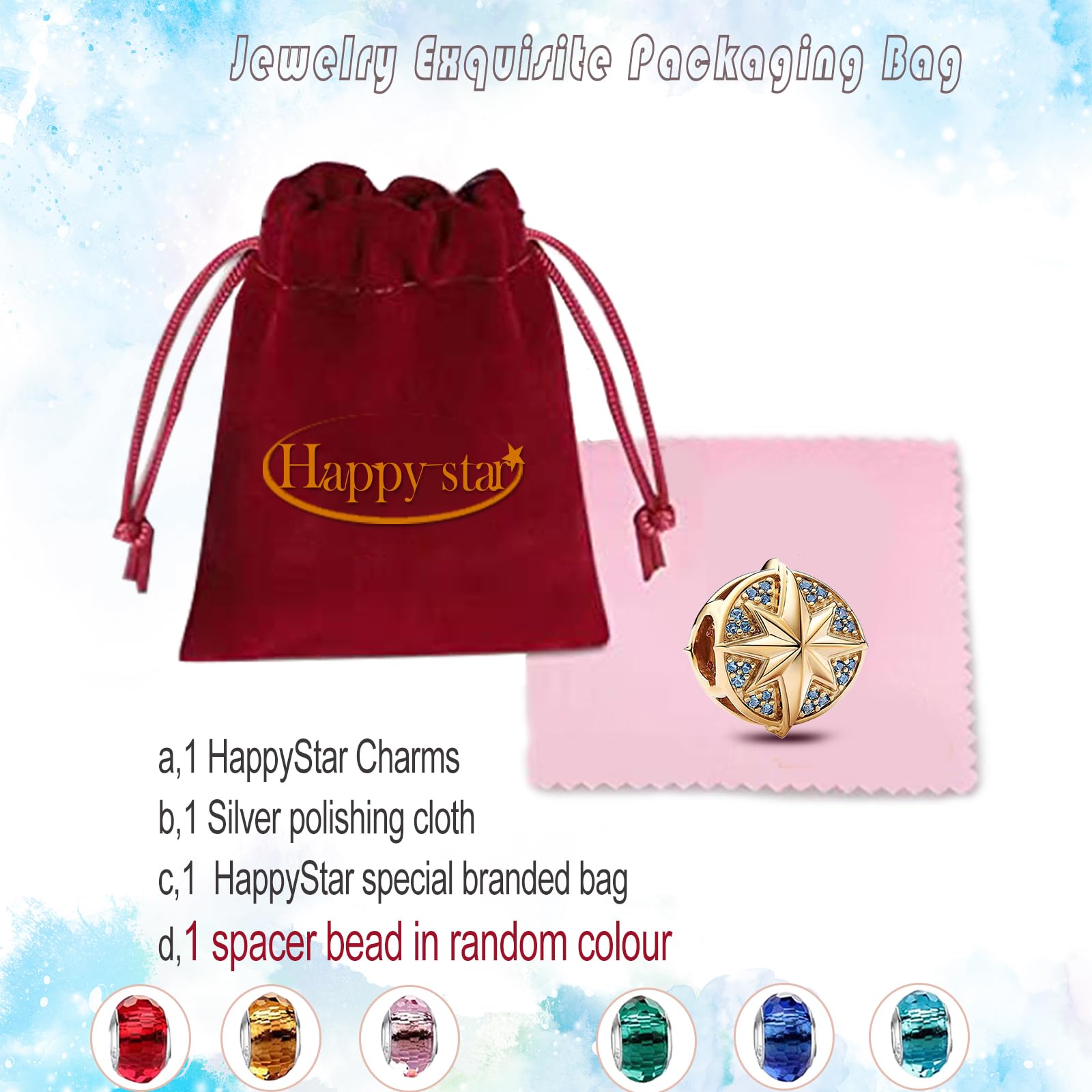 HappyStar beads charms,passt Charms Armbänder Halskette Europäischen Schmuck ,Bead Charms für Damen,925 Sterling Silber Dangle Anhänger
