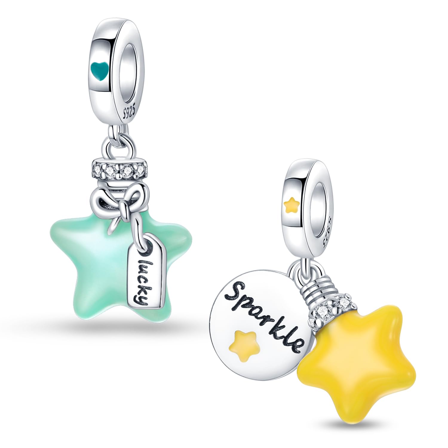 HappyStar Silber 925 Charms Anhänger für Armbänder, Combination Dangle Anhänger Bead Charms für Damen Kompatibel mit Pandora Europäischen Armbändern und Halskette (Mit Spacer Beads