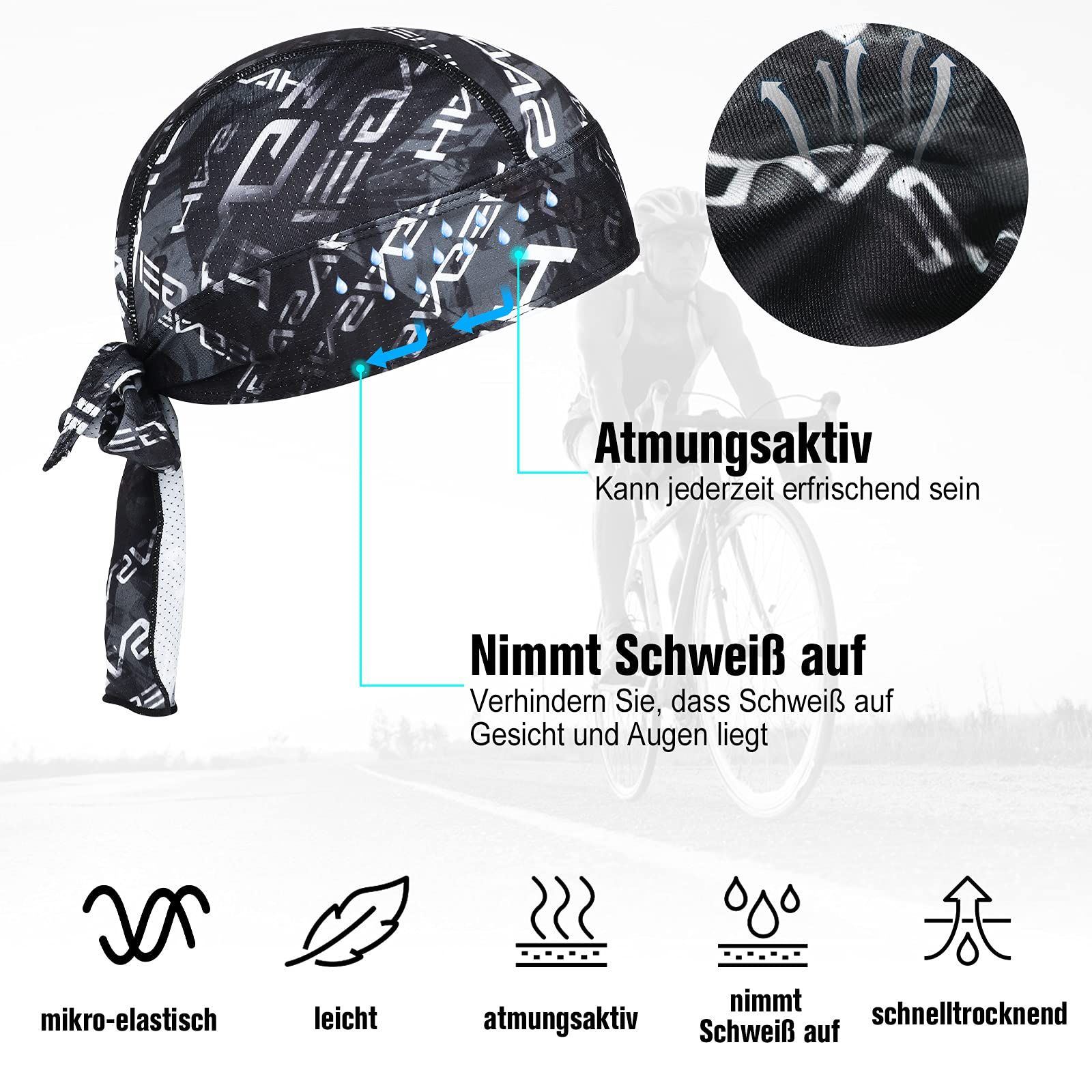 HASAGEI Sports Bandana Cap Bandana Kopftuch Fahrrad Kopfbedeckung Atmungsaktiv nimmt Schweiss auf Hat