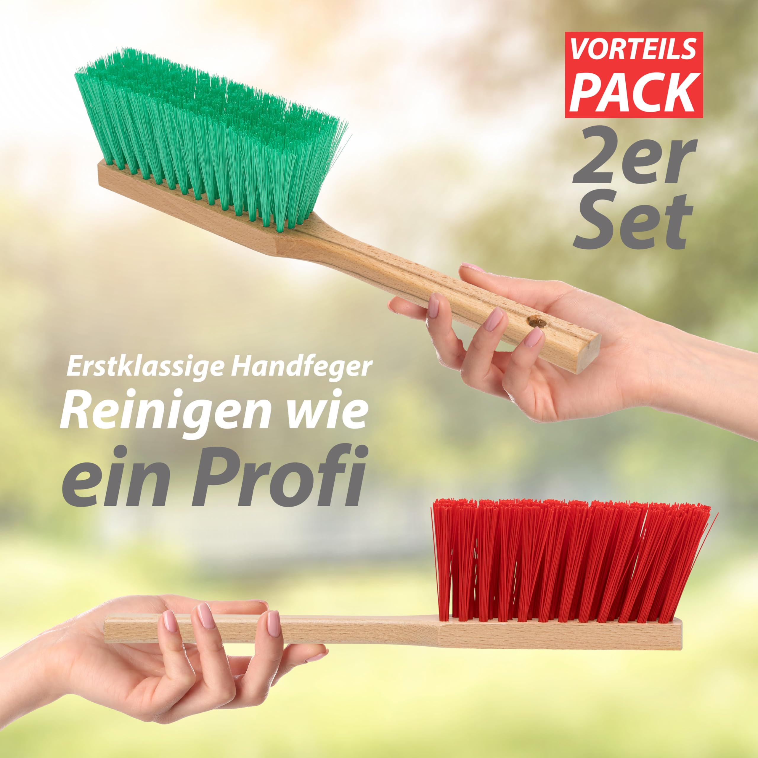 Hausfelder Handfeger 2er Set, Handbesen, Kehrbesen für Garten & Outdoor, mit harten Kunststoffborsten, Kleiner Besen für draussen