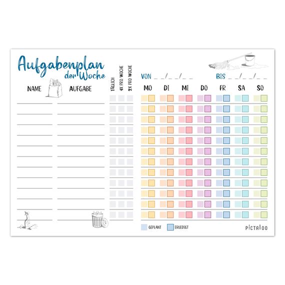 Haushaltsplaner Familie mit Aufgaben, Aufgabenplaner Kinder, Putzplan für den Haushalt, To Do Listen Block mit 50 Blatt, Wochenplaner A4, Checkliste für die WG Aufgabenverteilung (Papierblock)