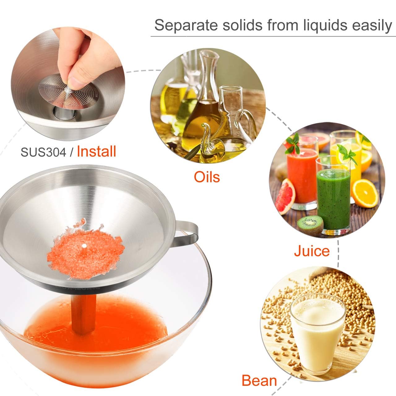 Przydatne urządzenie kuchenne. Właściwości: Lejek: z nierdzewnej stali szlachetnej 304 Średnica: 11/13/15 cm Wskazówki: 1. Temperatura robocza filtra sitowego wynosi 100 stopni. 2. Przed pierwszym użyciem należy umyć je ciepłą wodą z mydłem. 3. Po użyciu lejek ze stali nierdzewnej należy wyczyścić Zakres dostawy: 1 x lejek. 1 x lejek 13 cm. 1 x lejek 15 cm. 2 x sitko 304.
