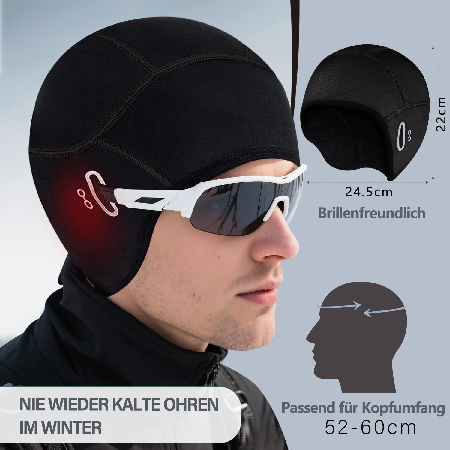 HAZENS Fahrradmütze Warm Winddicht Fahrradmütze unter Helm Atmungsaktiv Helm-Unterziehmütze für Herren & Damen Fahrradkappe Sportmütze Laufmütze Bike Warm Cap Wintermütze