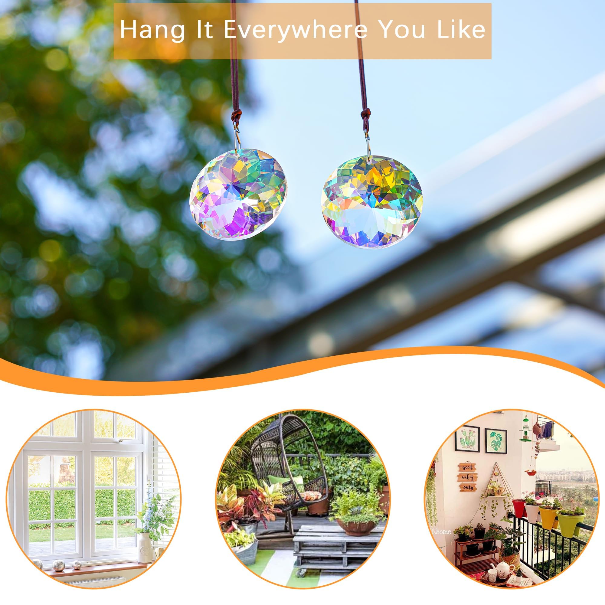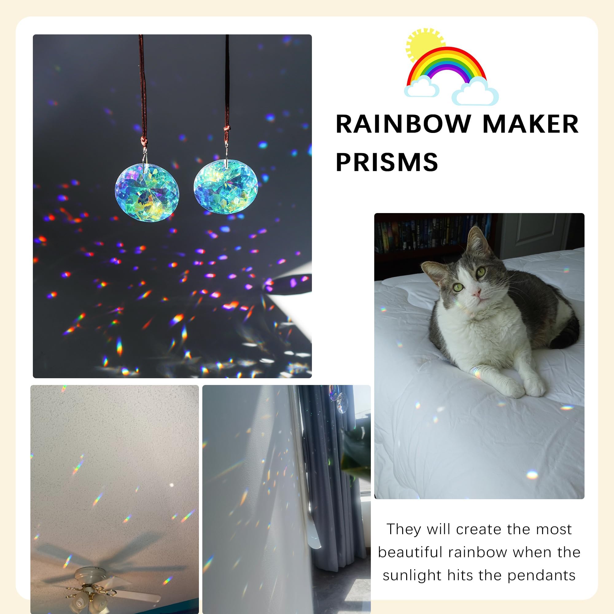 HDCRYSTALGIFTS 2 Stück 45mm Hängende Fenster Kristall Blumen Prismen Sonnenfänger, AB-farbige Kristall-Sonnenfänger hängende Ornamente Regenbogen-Macher Glas-Lichtfänger Anhänger Dekoration