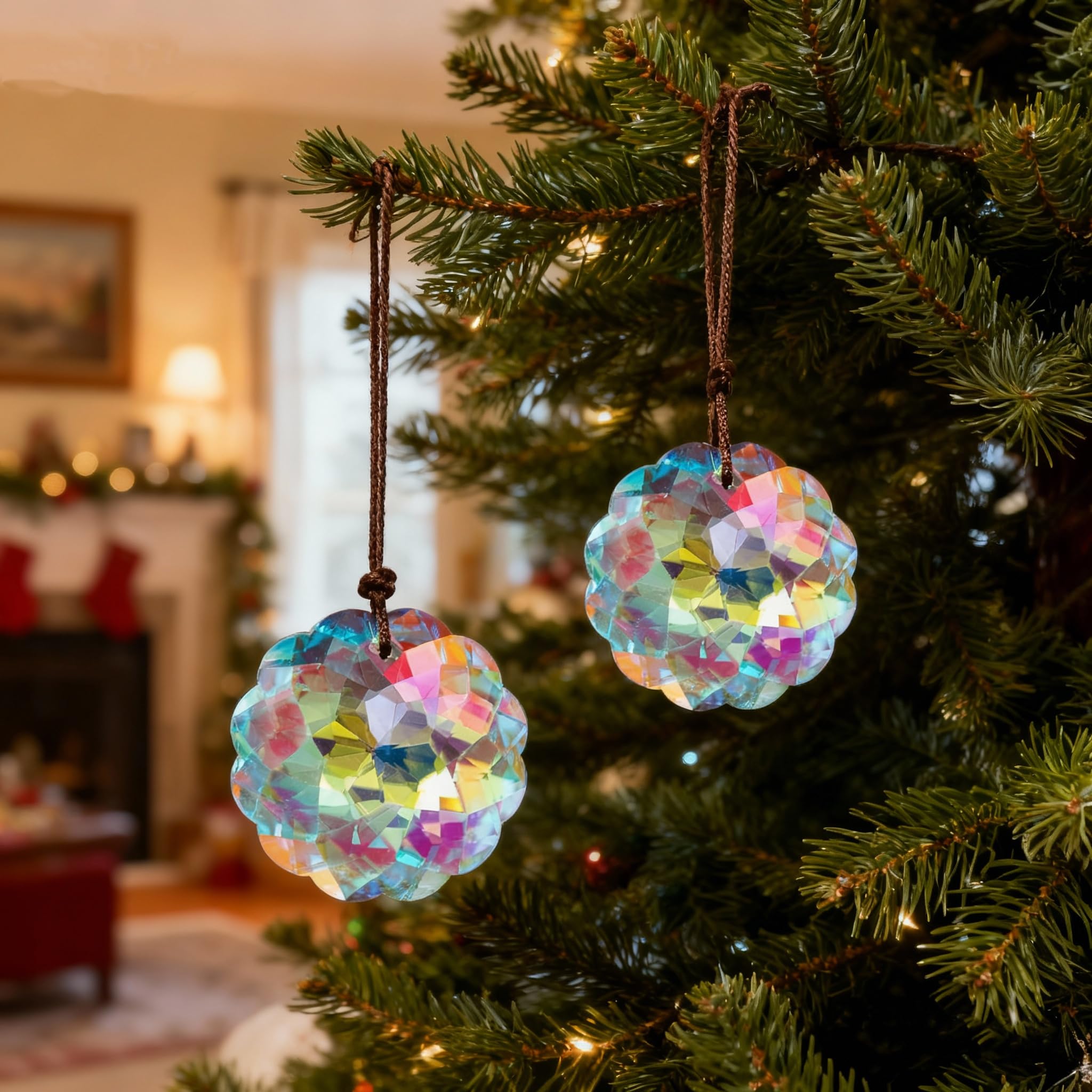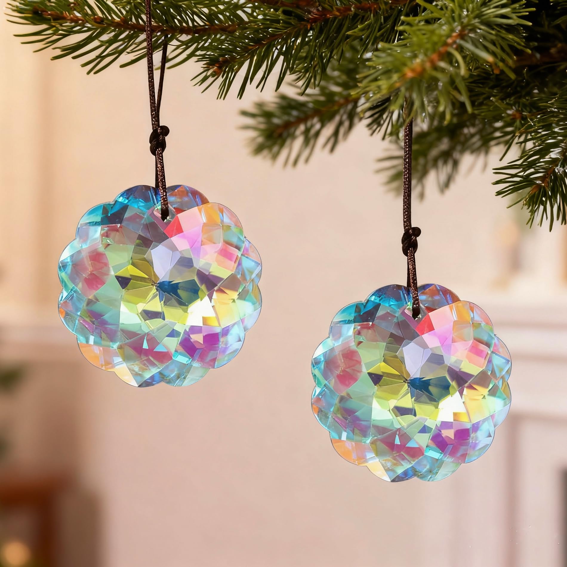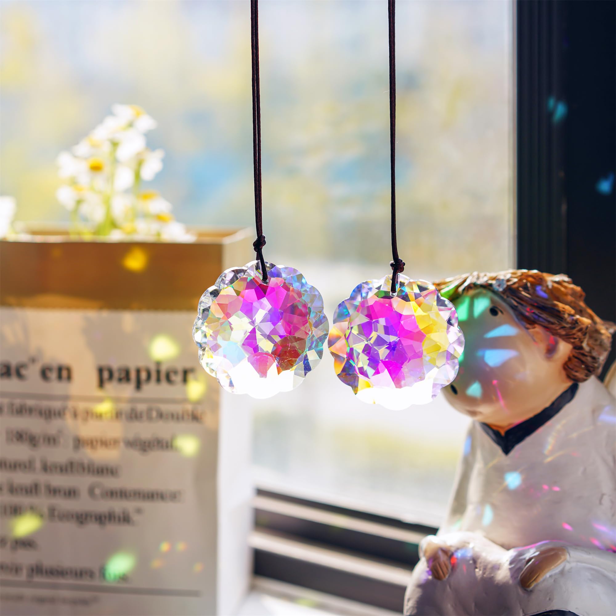 Set mit 2 Sonnenfängern aus Kristall in AB-Farbe, Stechapfel-Anhänger, Regenbogen-Feng-Shui-Hängeprisma (45 mm)