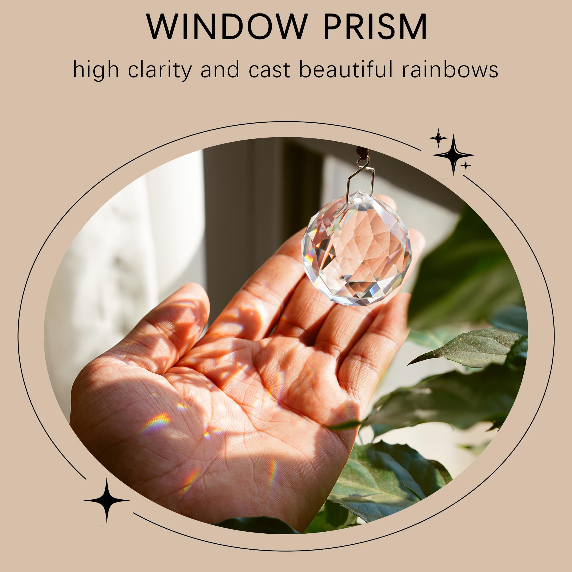 Erleben Sie die fesselnde Schönheit unserer 4er-Packung 40 mm Kristallkugel-Sonnenfänger, die sorgfältig aus hochwertigem Kristallglas gefertigt wurden, um faszinierende Regenbögen zu schaffen, wenn sie an einem Fenster aufgehängt werden. Jede 4,1 cm grosse Kugel ist eine perfekte Kugel, die brillante Farben in Ihr Zimmer bringt. Ideal für Wohnkultur, diese hängenden Kristalle sind perfekt für Fenster, Kronleuchter oder als Geschenk für jeden Anlass. Einfach aufzuhängen, sie erfordern keine Montage und werden mit einer Schnur und Schnur geliefert. Geniessen Sie die atemberaubende Lichtshow, die sie kreieren, drinnen oder draussen, ohne Wartung.