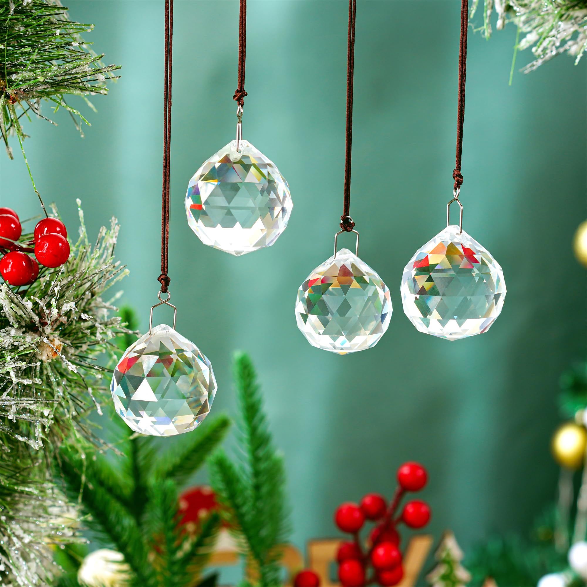 4er-Pack 40 mm klare Kristall-Prismenkugeln Sonnenfänger Regenbogen-Anhänger, hängende Kristalle Kronleuchter-Prismen für Fenster Heimdekoration