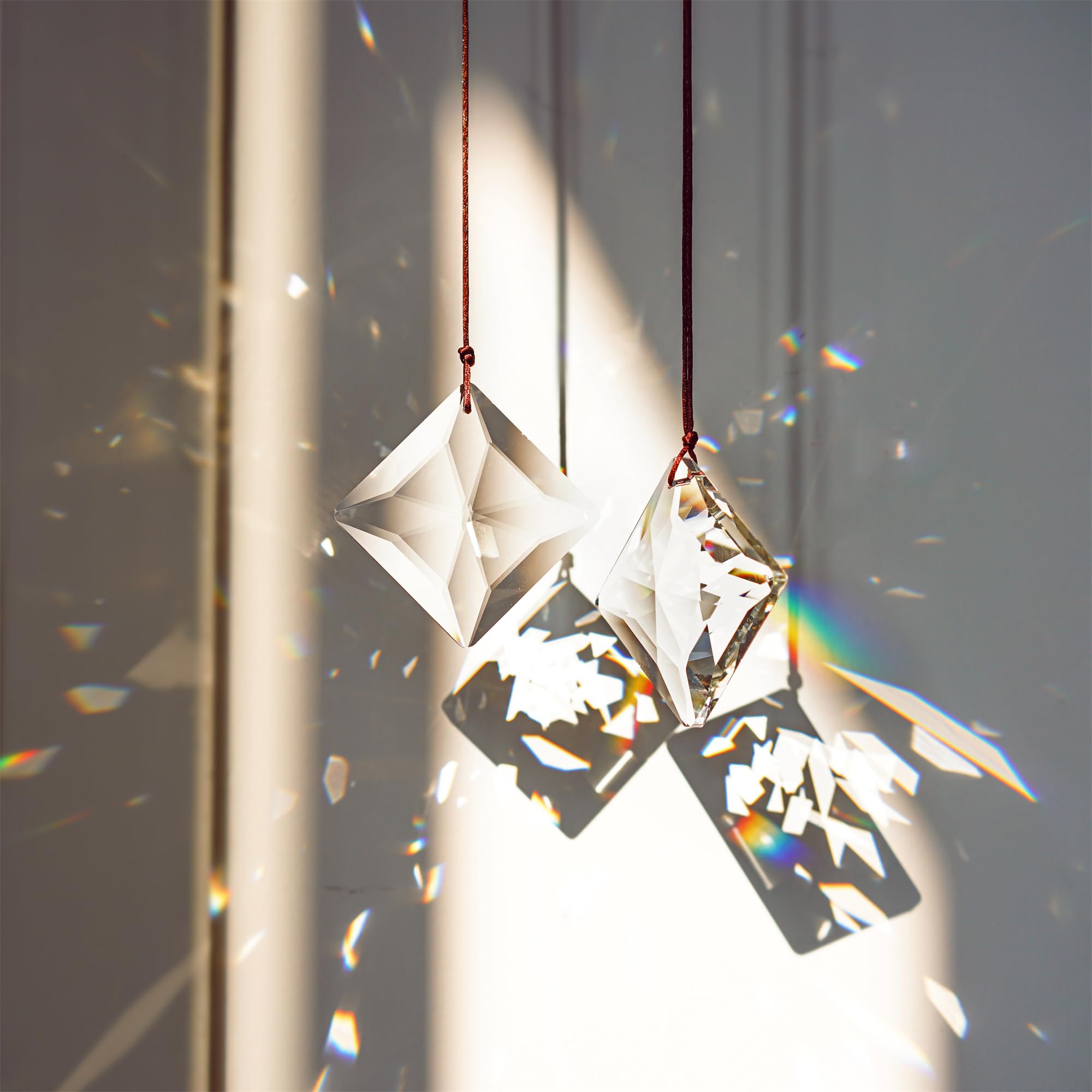 - Der quadratische Prismen-Sonnenfänger ist aus hochwertigem Kristallglas der Güteklasse K9, wasserklar, gut geschnitten. Länge: 6,9 cm, Dicke: 3,8 cm. Lieferumfang: 2 Stück