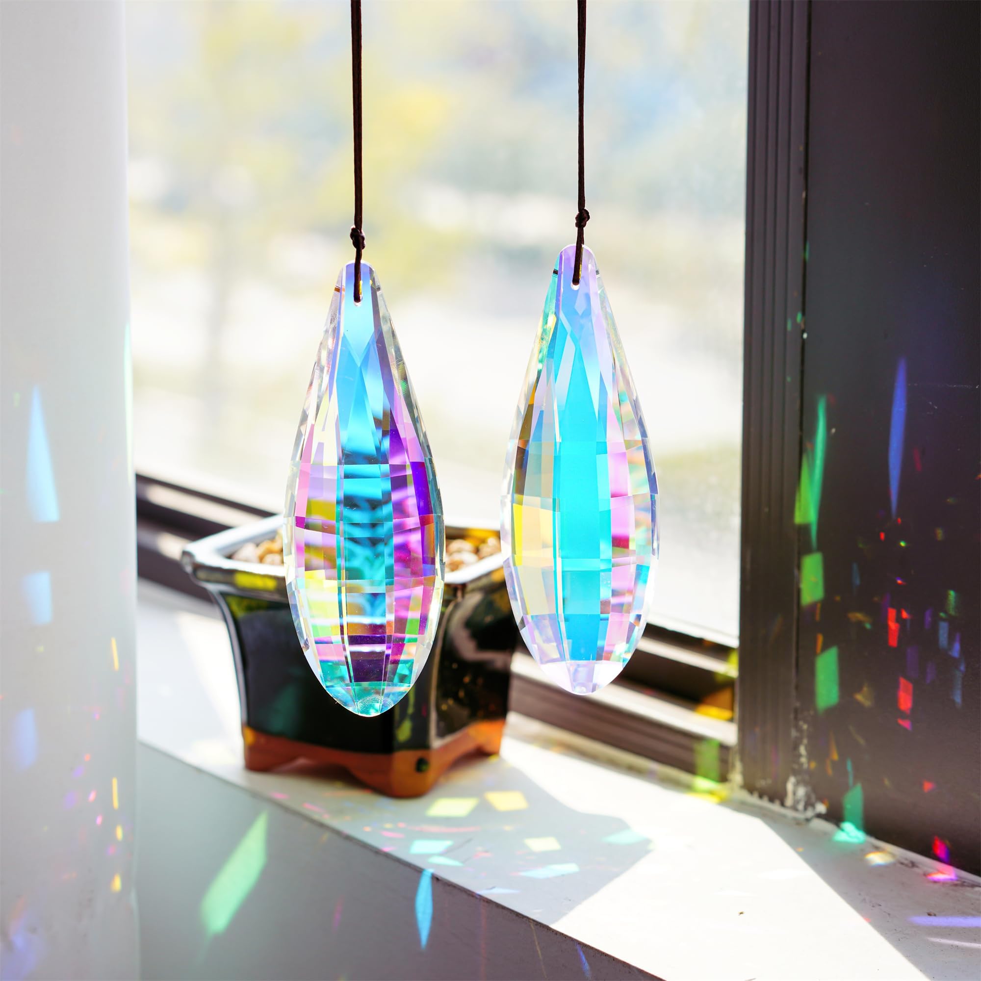 HDCRYSTALGIFTS Set mit 2 Stück, 2.120 mm bunte Glasprismen Traumfänger zum Aufhängen am Fenster, Regenbogen-Design, Glasprismen, Traumfänger für Innendekoration und