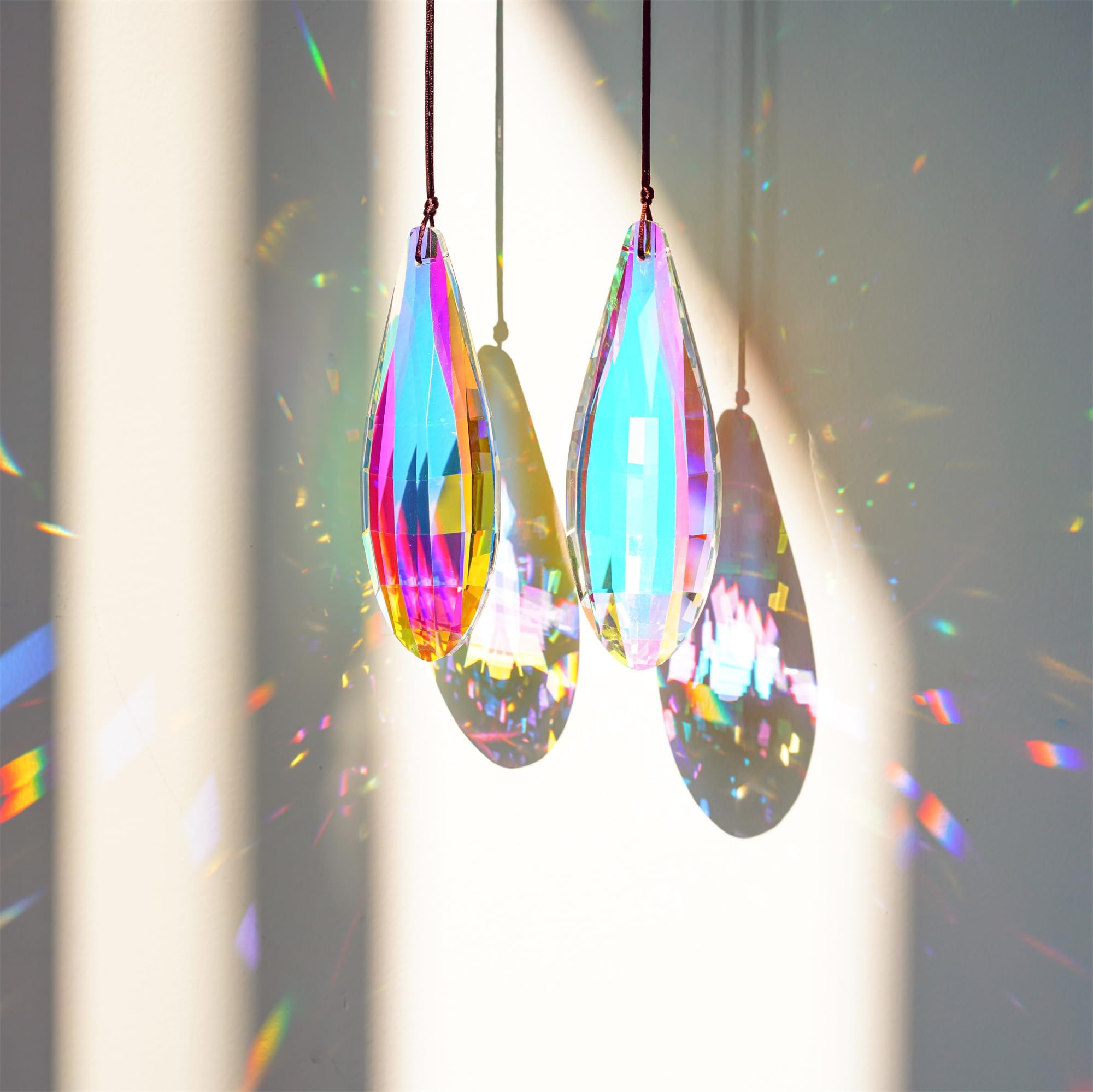 - Hersteller von Regenbögen: Dieses hängende Glasprisma ist ein grossartiger Lichtfänger und Reflektor, wenn es direktem Sonnenlicht ausgesetzt ist. Es wird leuchten und wunderschöne Regenbögen durch das Sonnenlicht in Ihren Raum werfen.